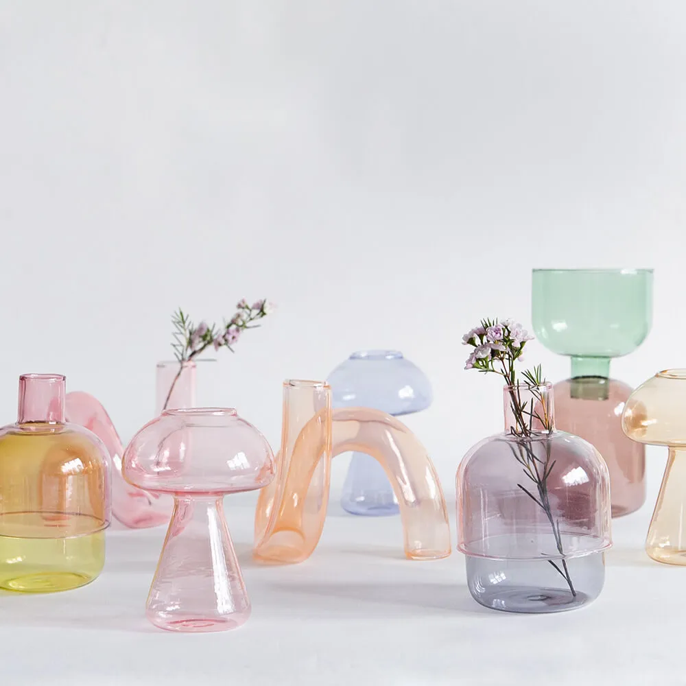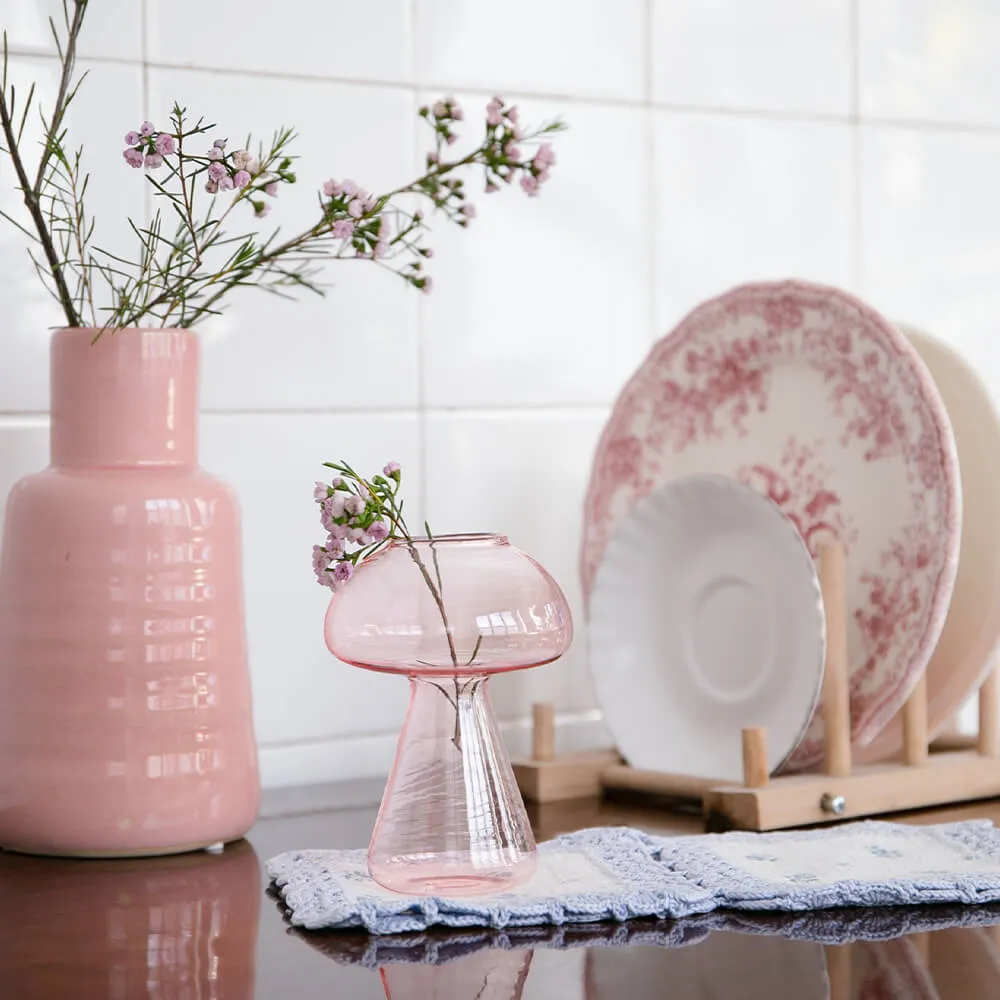 Ваза Грибочек прозрачная розовая цвет Розовый купить в интернет магазине Friend Function