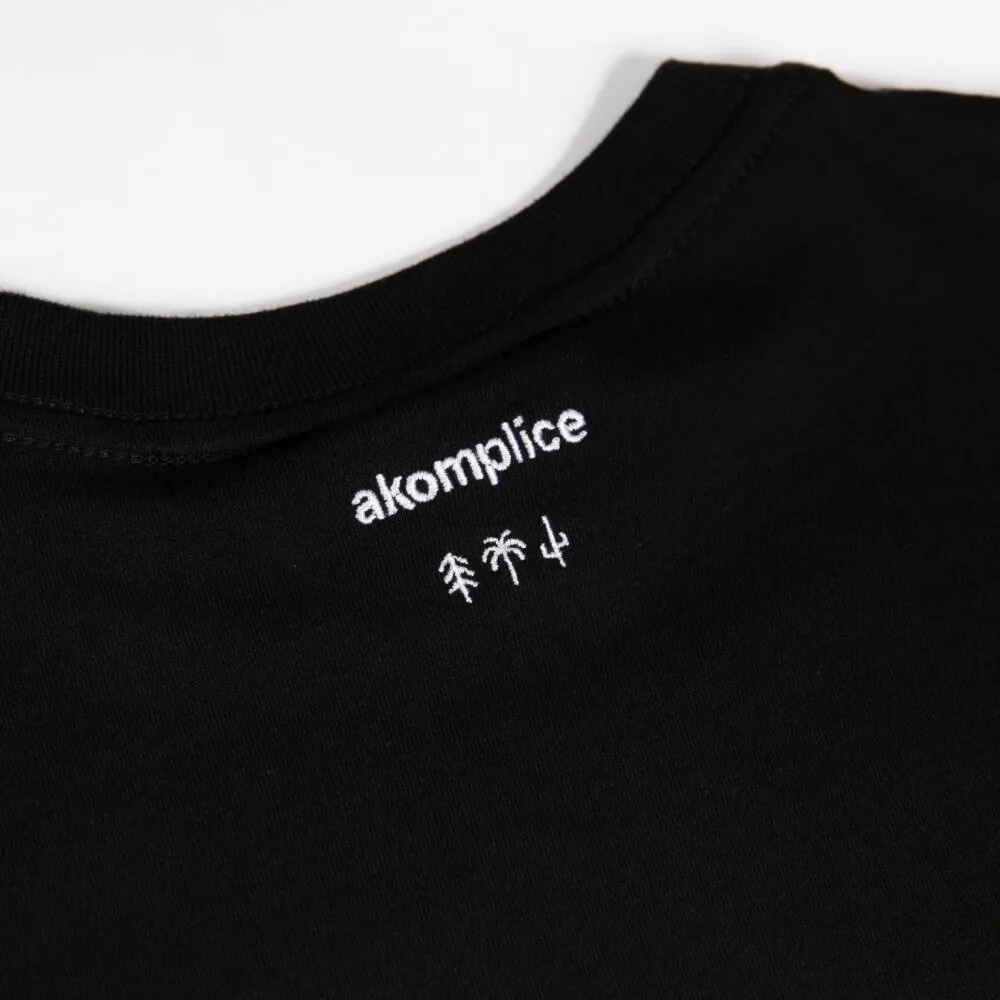 Приятная черная футболка Love Over Fear Embroidered из органического хлопка американской марки AKOMPLICE.