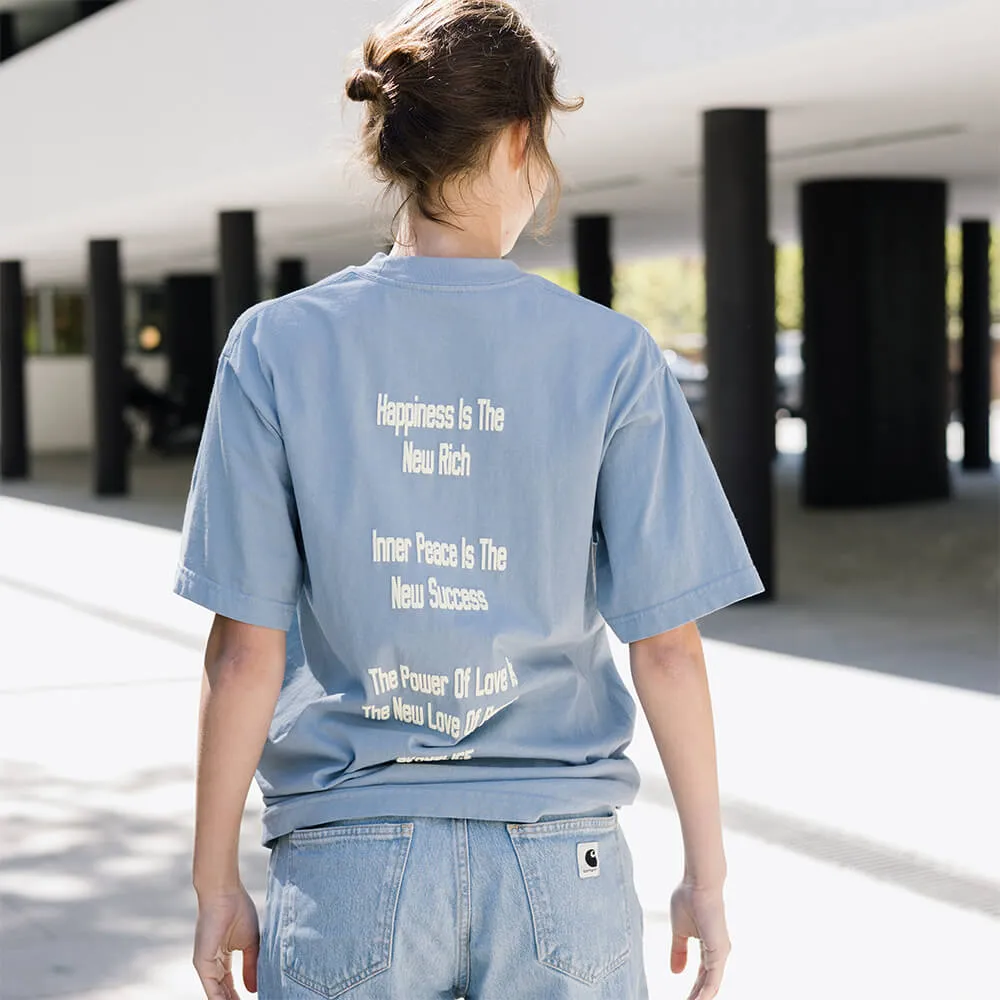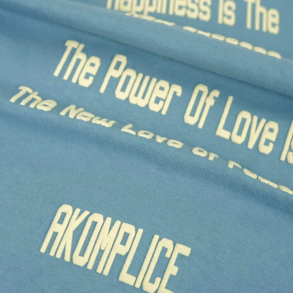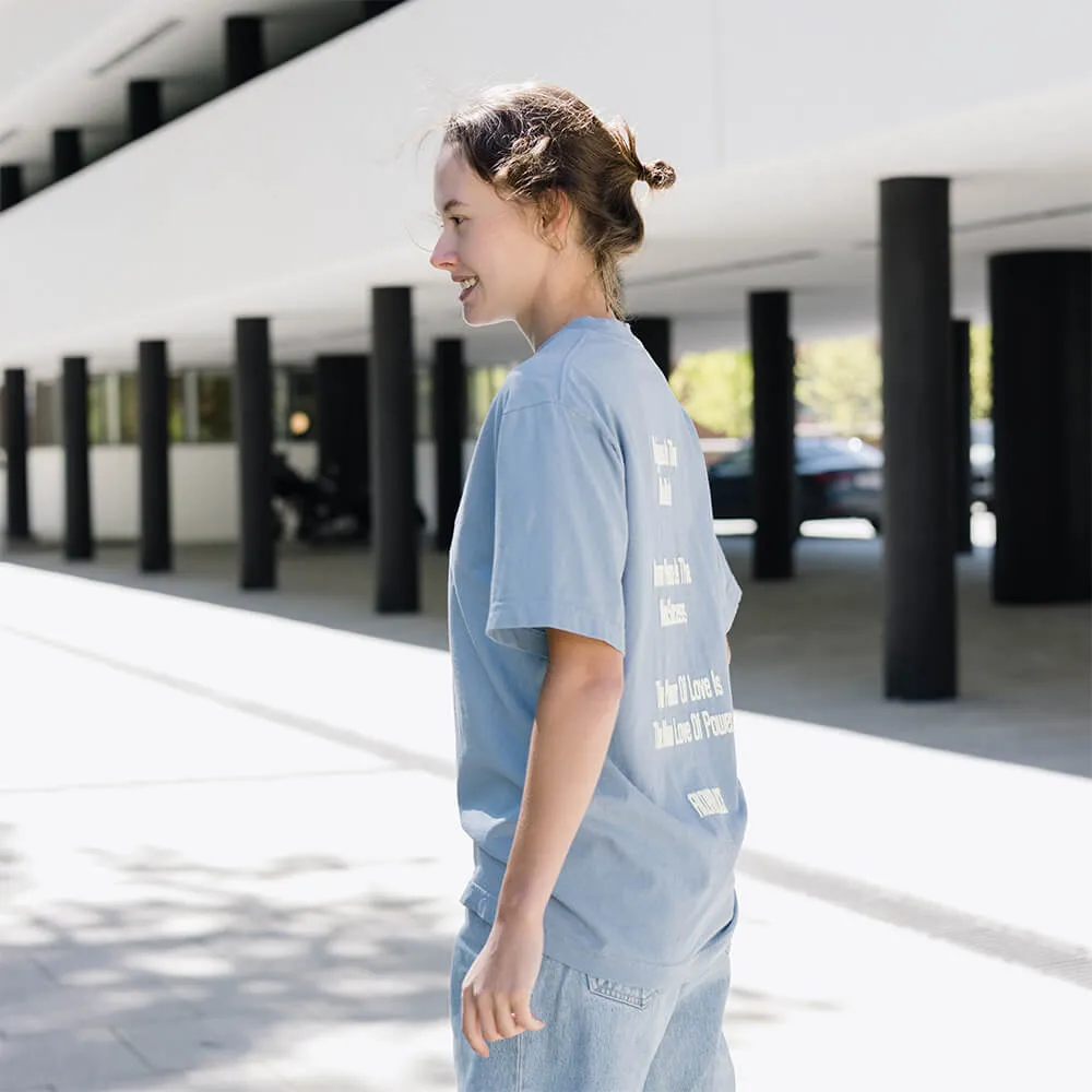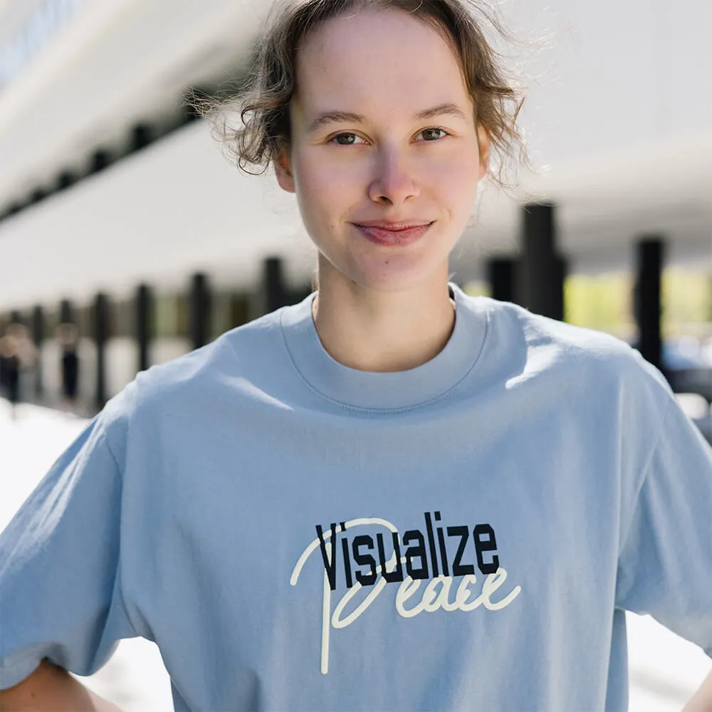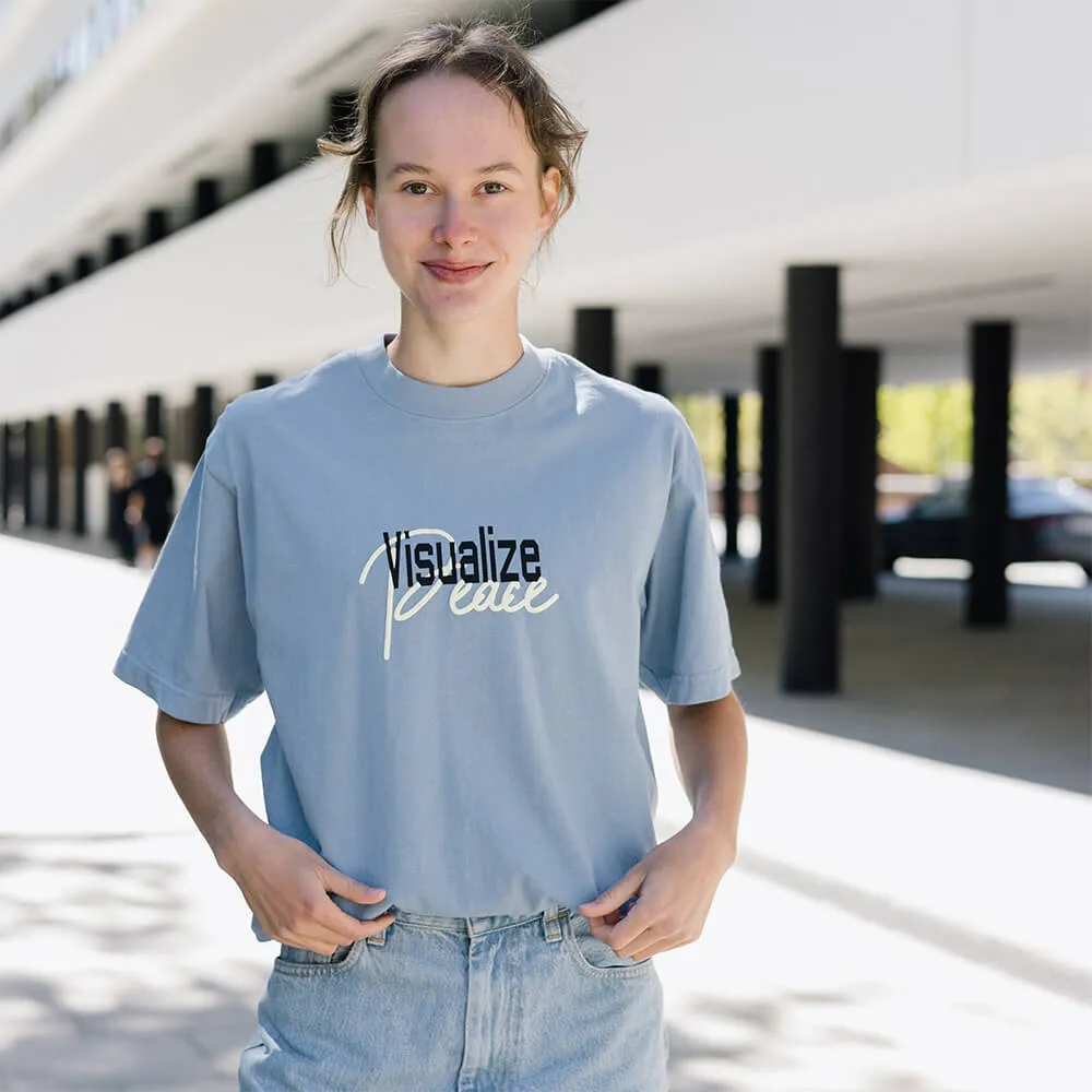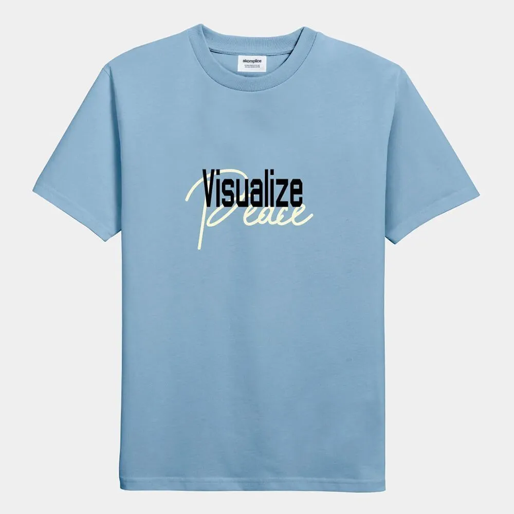 Приятная голубая футболка Visualize Peace из хлопка американской марки AKOMPLICE.