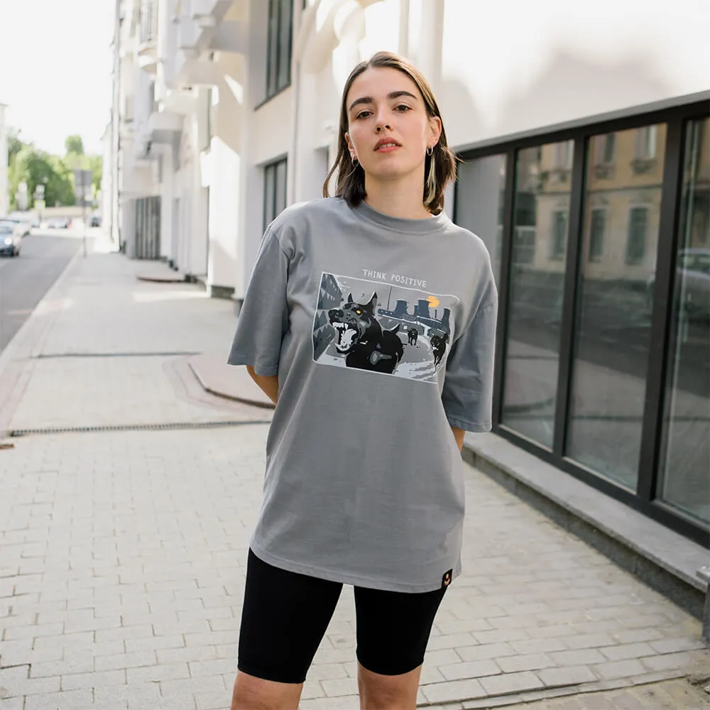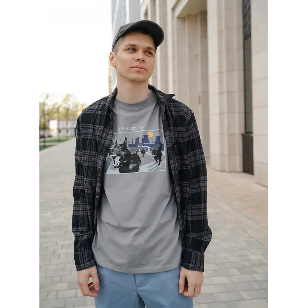 Футболка Barking Store Think positive цвет Серый купить в интернет магазине Friend Function