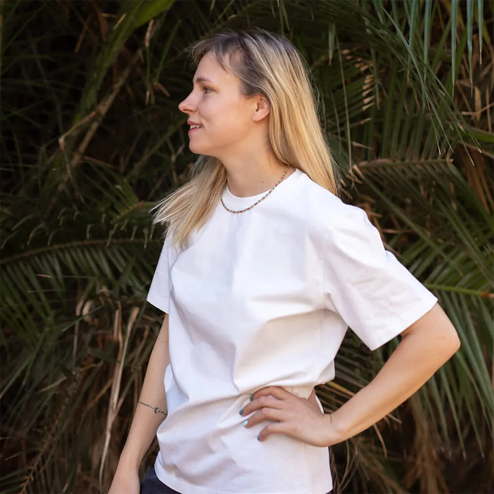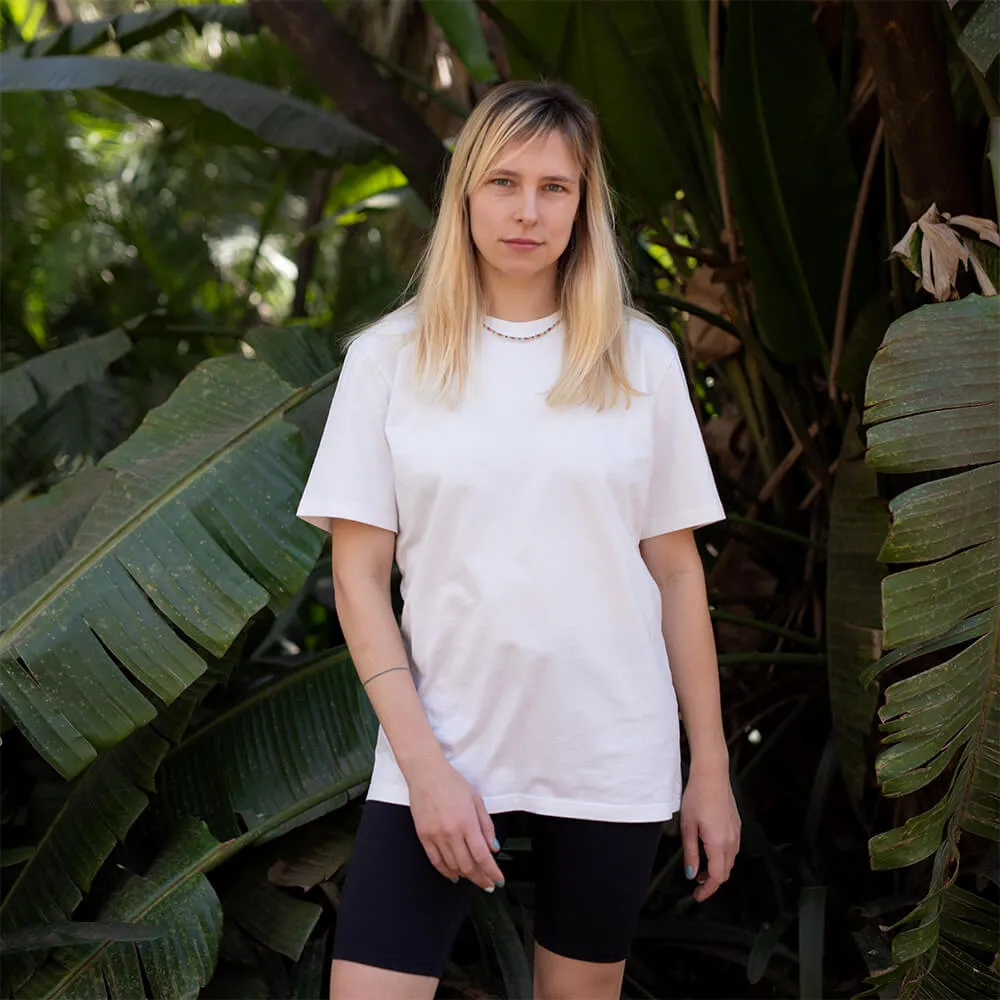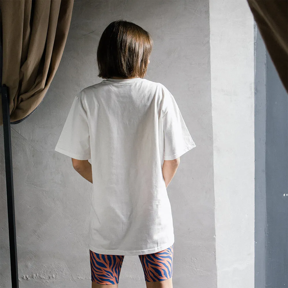 Мы разрабатывали эту футболку очень долго, 3 раза отчаивались, но все же смогли сделать футболку, которая подходит людям разных полов и разных комплекций.