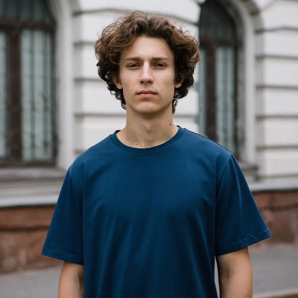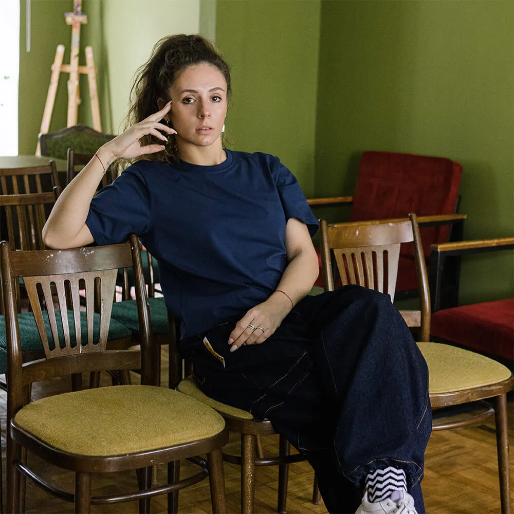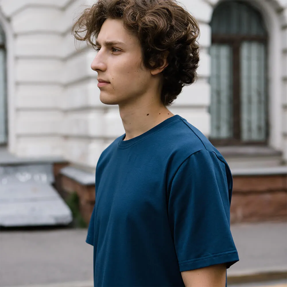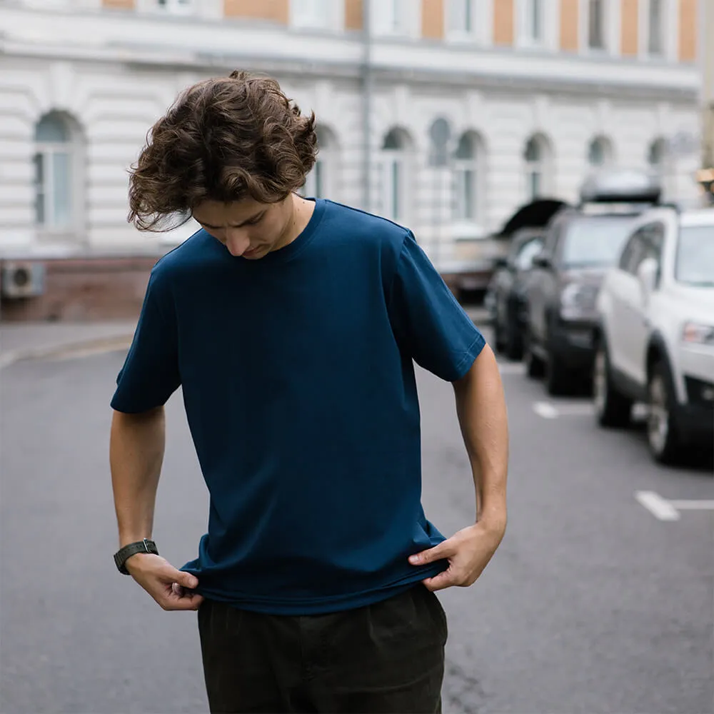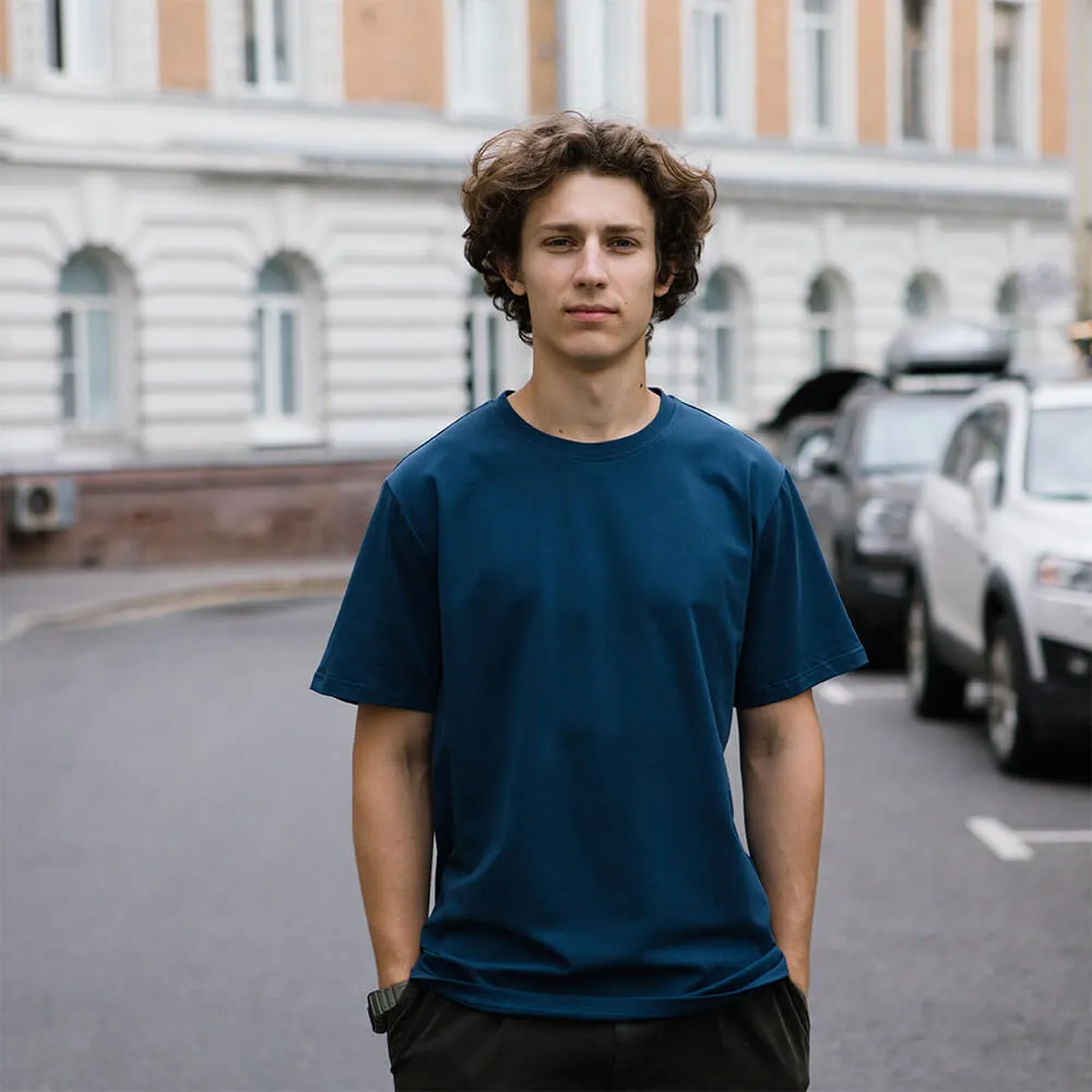 Футболка отменного качества, цвета индиго. Та самая базовая футболка, которую так трудно найти.