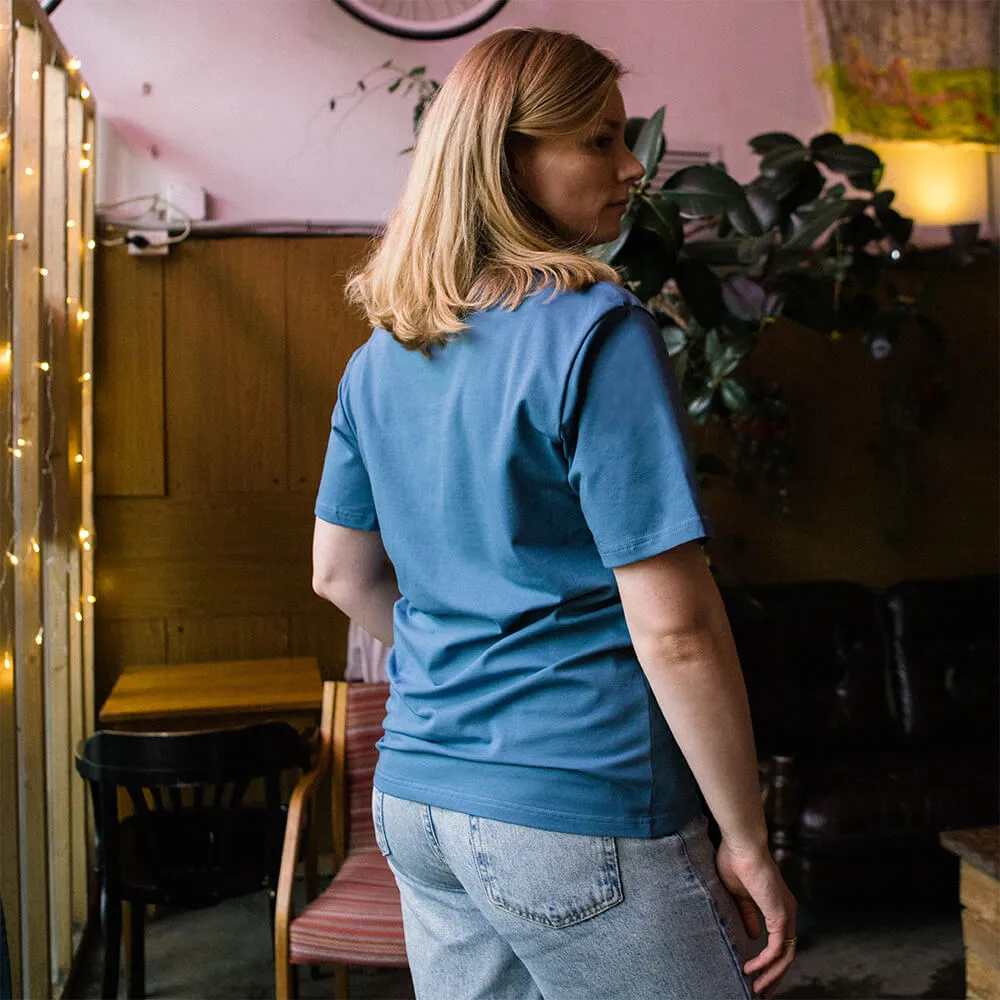 Мы разрабатывали эту футболку очень долго, 3 раза отчаивались, но все же смогли сделать футболку, которая подходит людям разных полов и разных комплекций.