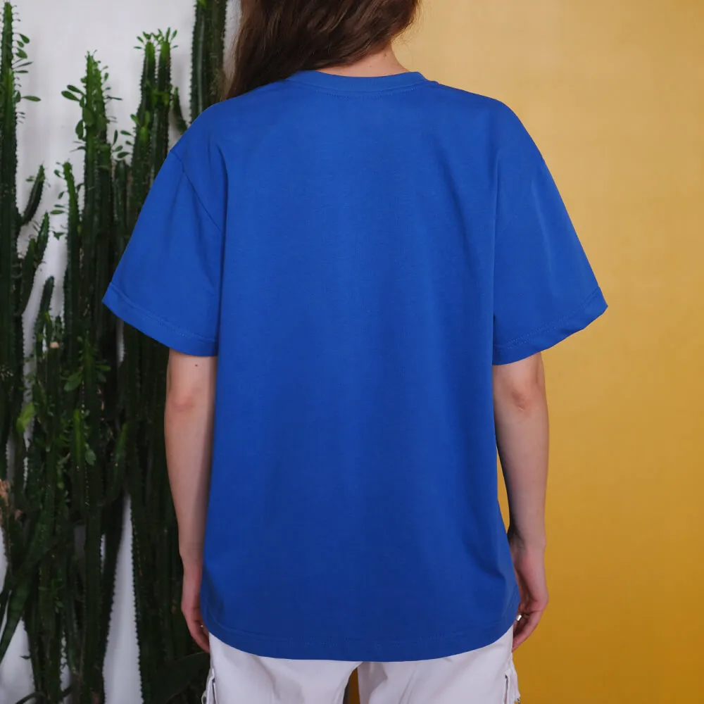 Приятная телу синяя футболка из плотного хлопка (230г/м2).