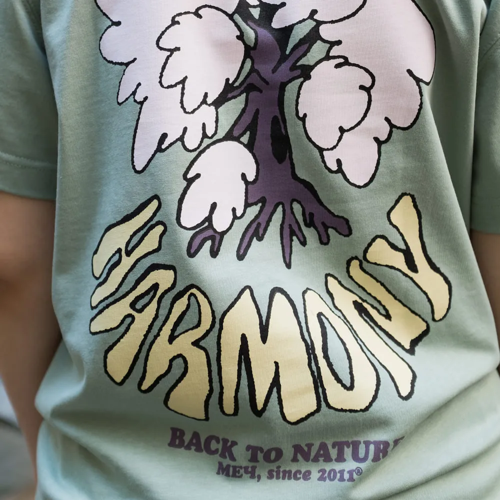 Универсальная свободная футболка, сшитая из хлопковой ткани средней плотности. На груди и сзади — яркие принты "Harmony".