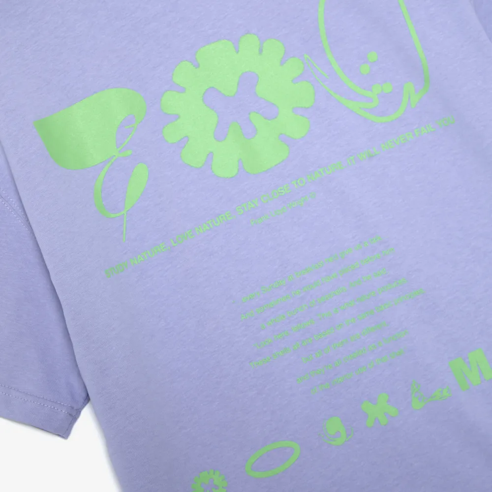 Передняя сторона украшена лаконичным принтом, а задняя часть — абстрактным одноцветным изображением..
