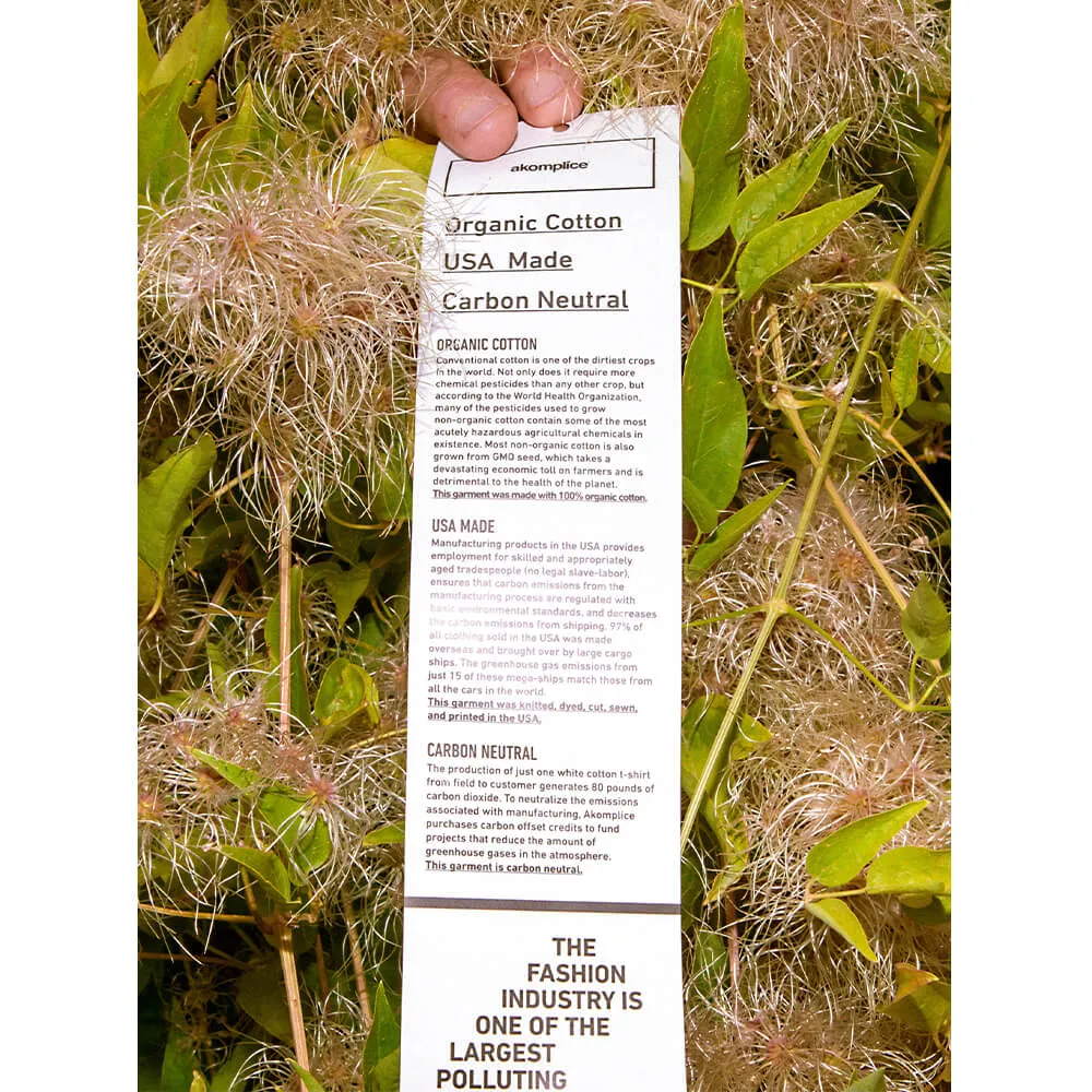 Приятный черный лонгслив Fuck Fast Fashion из органического хлопка американской марки AKOMPLICE посвящен проблемам швейной промышленности, которая является вторым по величине загрязнителем в мире, уступая только нефти. В основном виноваты бренды быстрой моды.