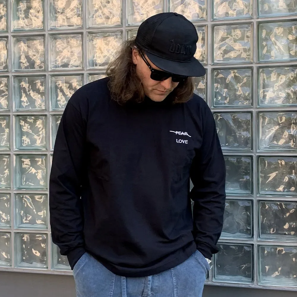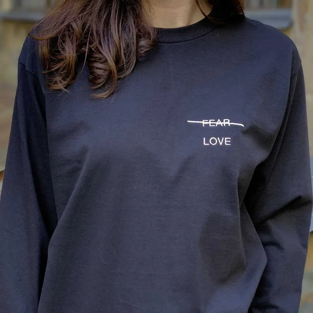 Приятный черный лонгслив Love Over Fear Embroidered из органического хлопка американской марки AKOMPLICE.