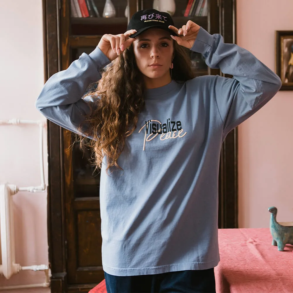 Приятный голубой лонгслив Visualize Peace из хлопка американской марки AKOMPLICE.