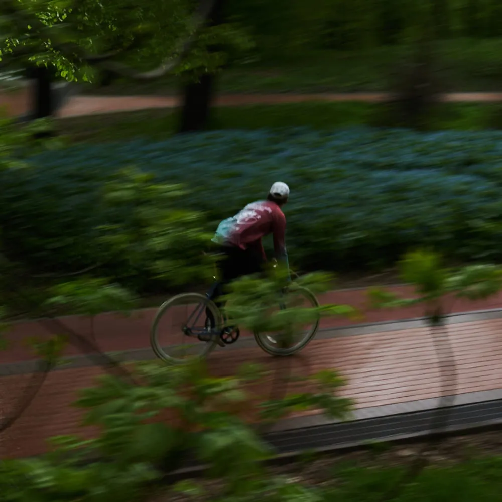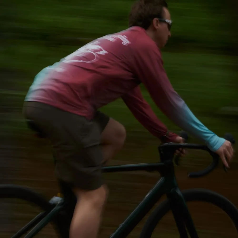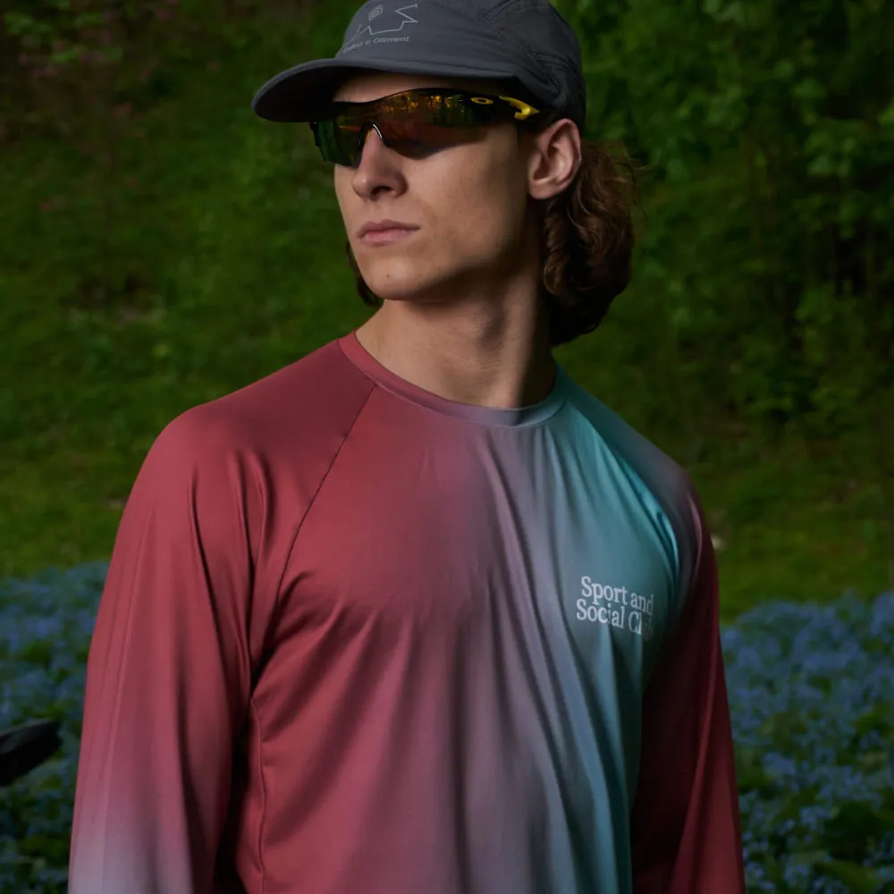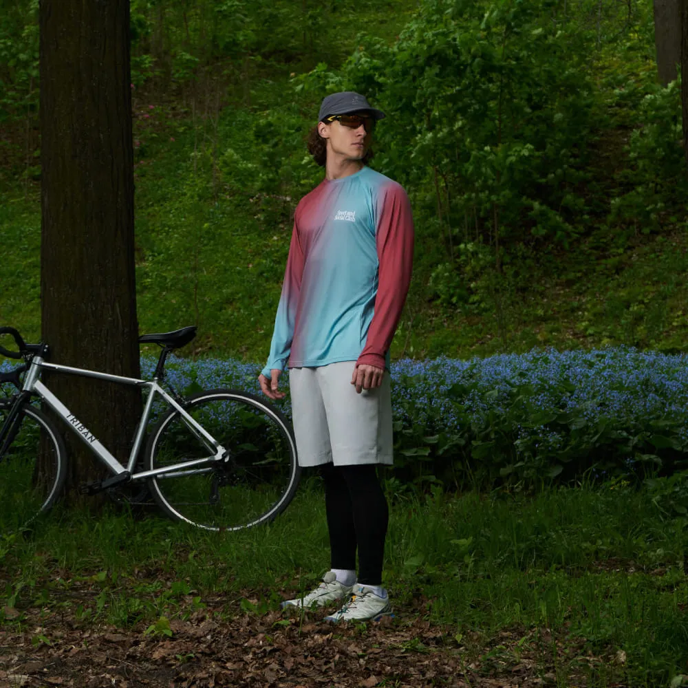 Особая посадка с нестандартным расположением швов для удобства использования во время занятий спортом. Модель состоит из множества деталей, необходимых для корректной посадки в движении, одна из них — специальные отверстия под большой палец, чтобы при активности лонг на рукавах не задирался.