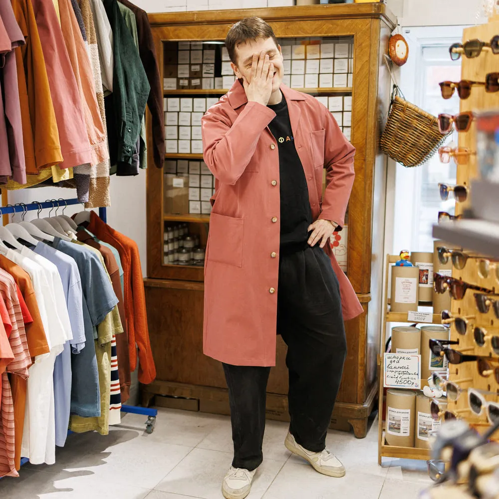 - Халат в духе советских НИИ.