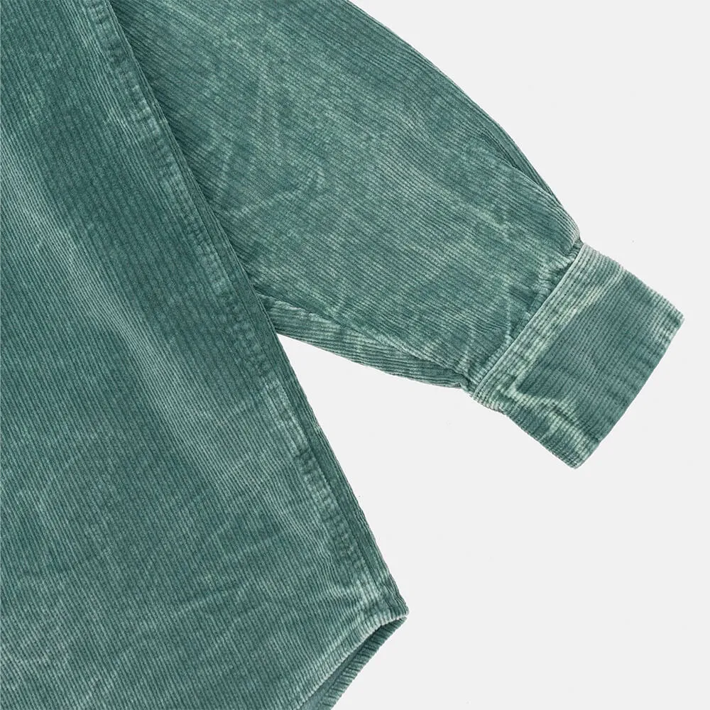 Это та самая рубашка, которой вам не хватало: уютный и плотный вельвет зеленого цвета с приятной неоднородной фактурой, с футболкой, с пальто, как летнюю куртку или как зимний дополнительный слой одежды. Та самая, родная рубашка, с которой не хочется расставаться, которую вы, решая чтобы сегодня надеть (особенно когда всё бесит) выбираете как самый любимый и проверенный вариант, и которую вы всегда возьмете с собой в любую поездку.
