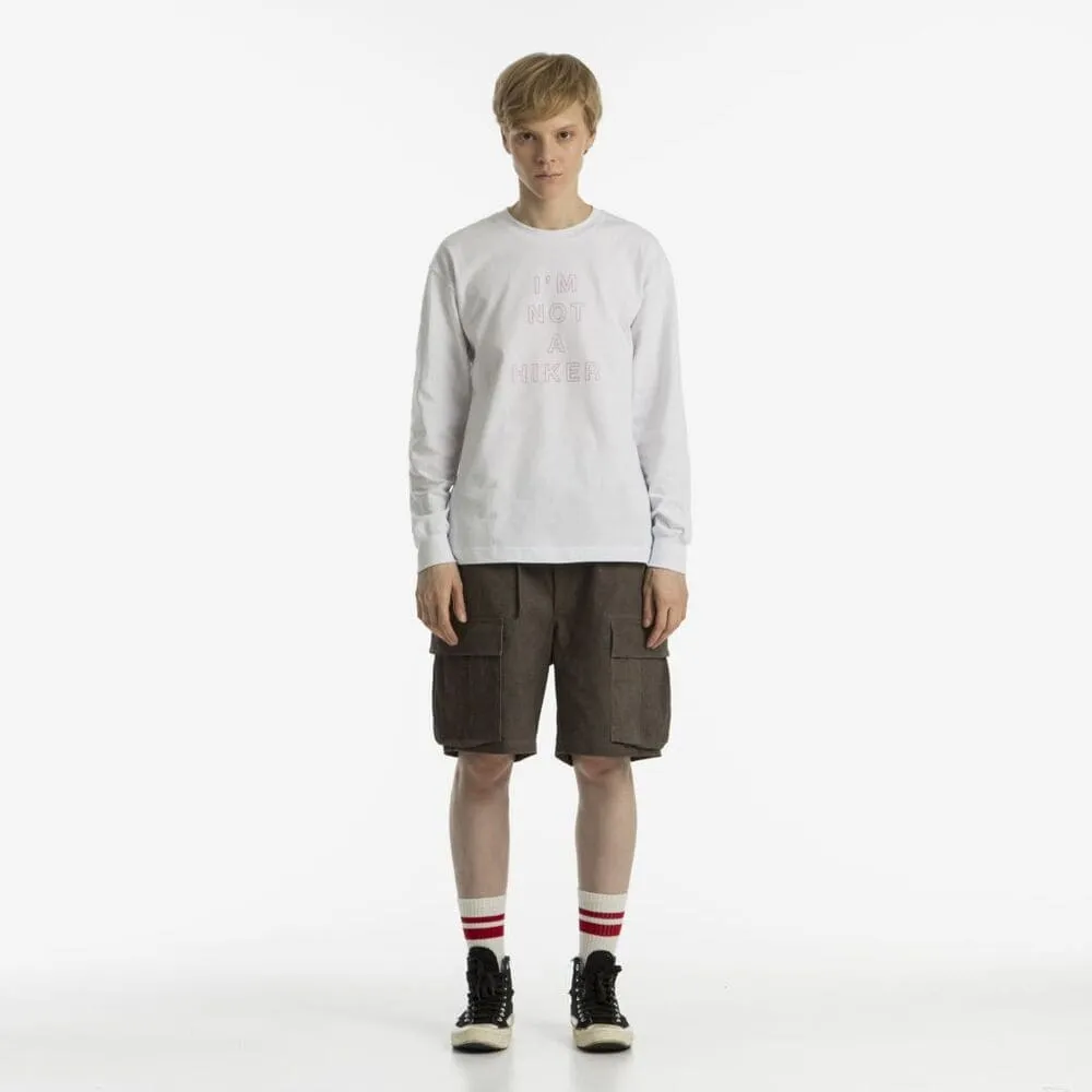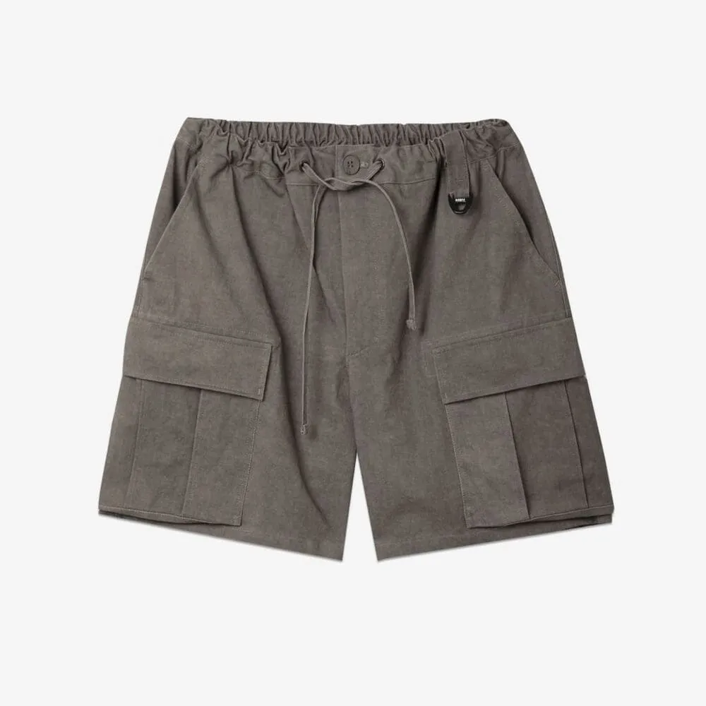 Широкие шорты, в которых совмещены детали винтажных военных карго и рабочих фасонов. Есть шлевка с небольшим полукольцом для пристежки карабина или ключницы. И карманов хватит с запасом: карго-карманы снизу, расположенные так, чтобы не сковывать движения, два врезных кармана спереди и глубокие накладные карманы сзади.