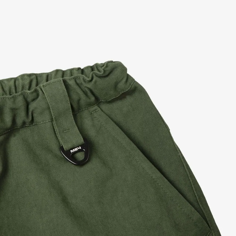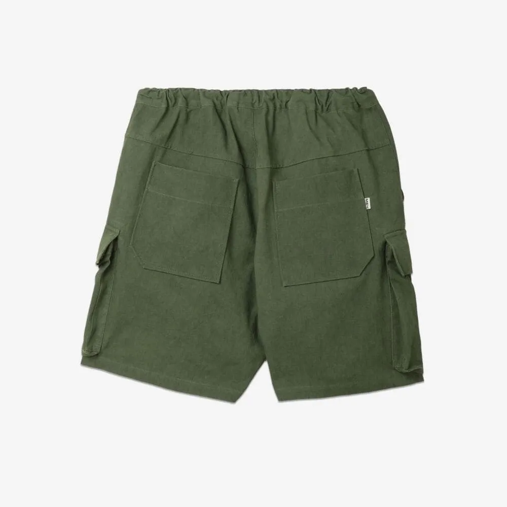 Широкие шорты, в которых совмещены детали винтажных военных карго и рабочих фасонов. Есть шлевка с небольшим полукольцом для пристежки карабина или ключницы. И карманов хватит с запасом: карго-карманы снизу, расположенные так, чтобы не сковывать движения, два врезных кармана спереди и глубокие накладные карманы сзади.