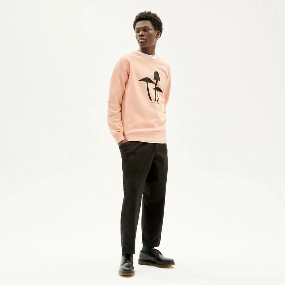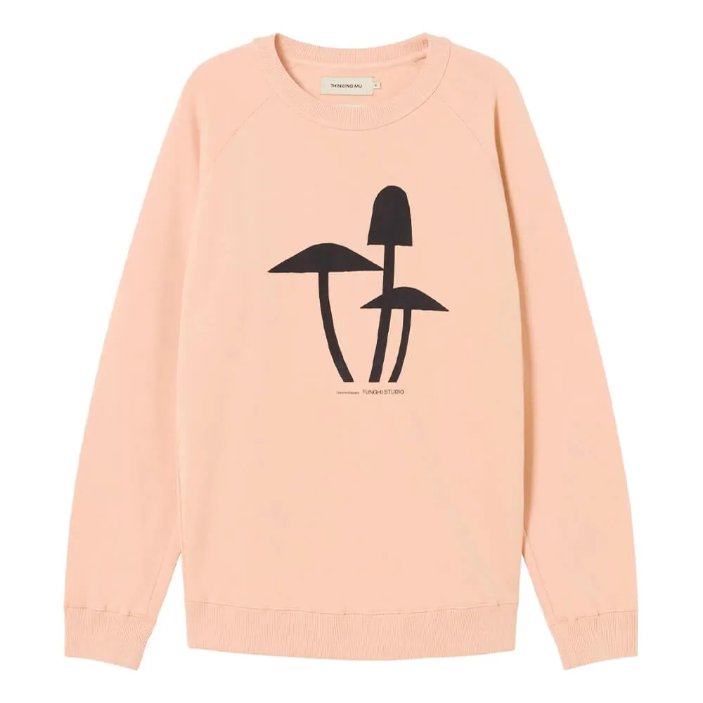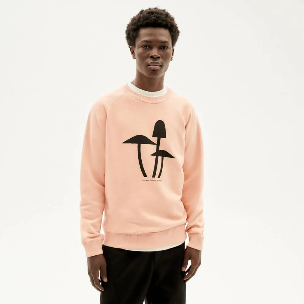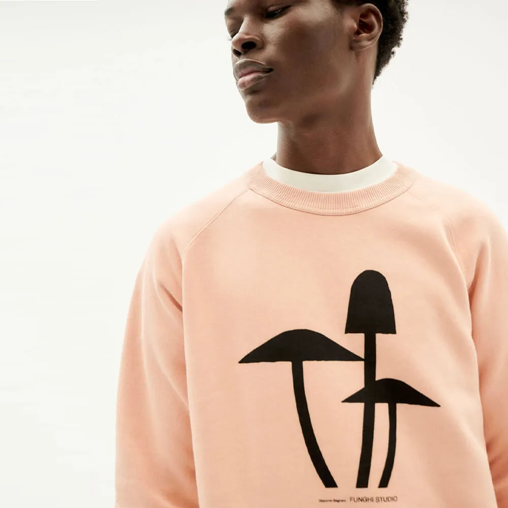 Свитшот розового цвета из серии Funghi 3, созданный в сотрудничестве с художником Джакомо Баньярой, от испанского бренда Thinking Mu.