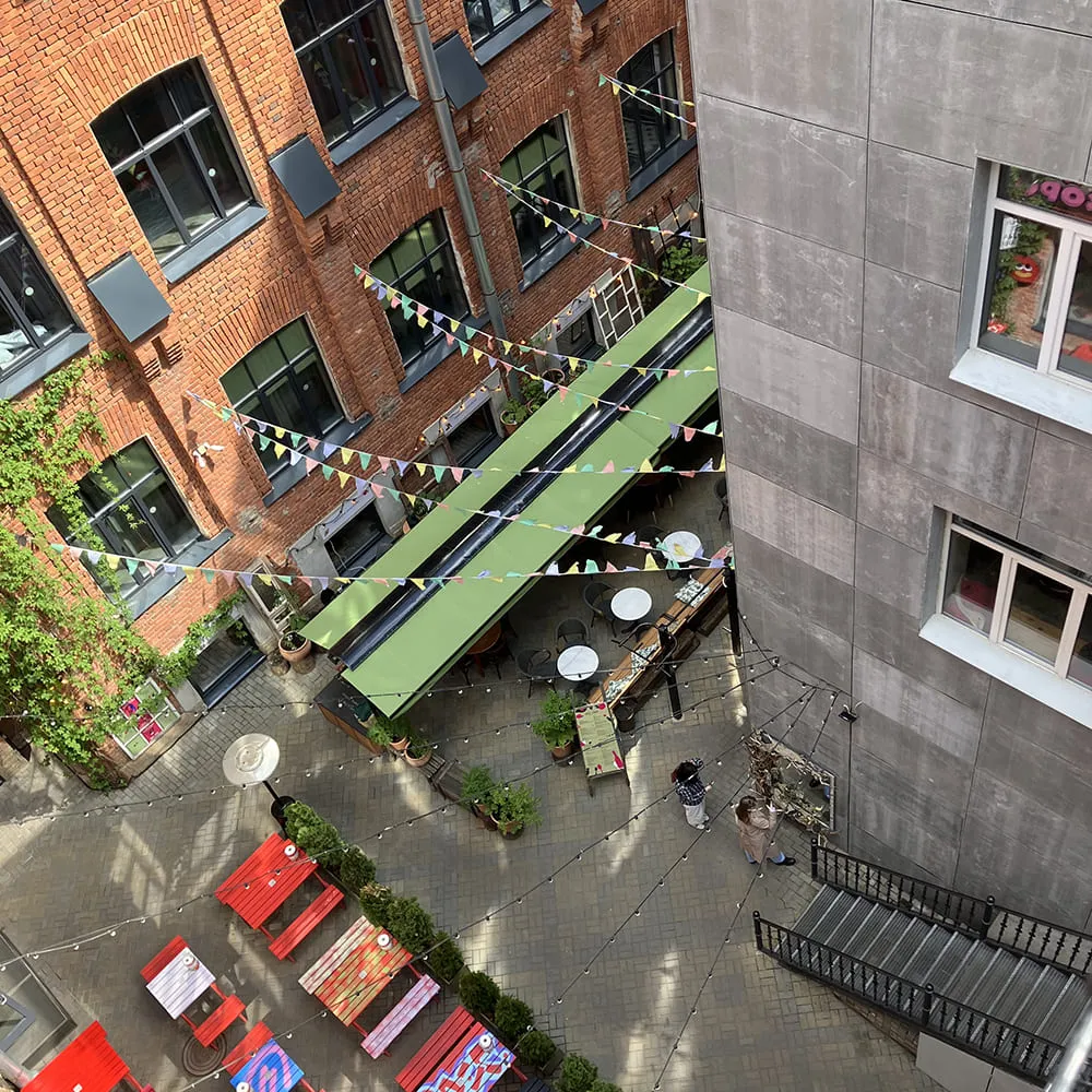 • заглянете в открытый двор на месте пивоваренного завода с выставочным пространством и тапрумом.