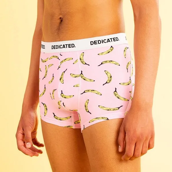 Трусы-боксеры от шведского бренда Dedicated, изготовленные из органического хлопка. Пестрят бананами и позитивным настроением.