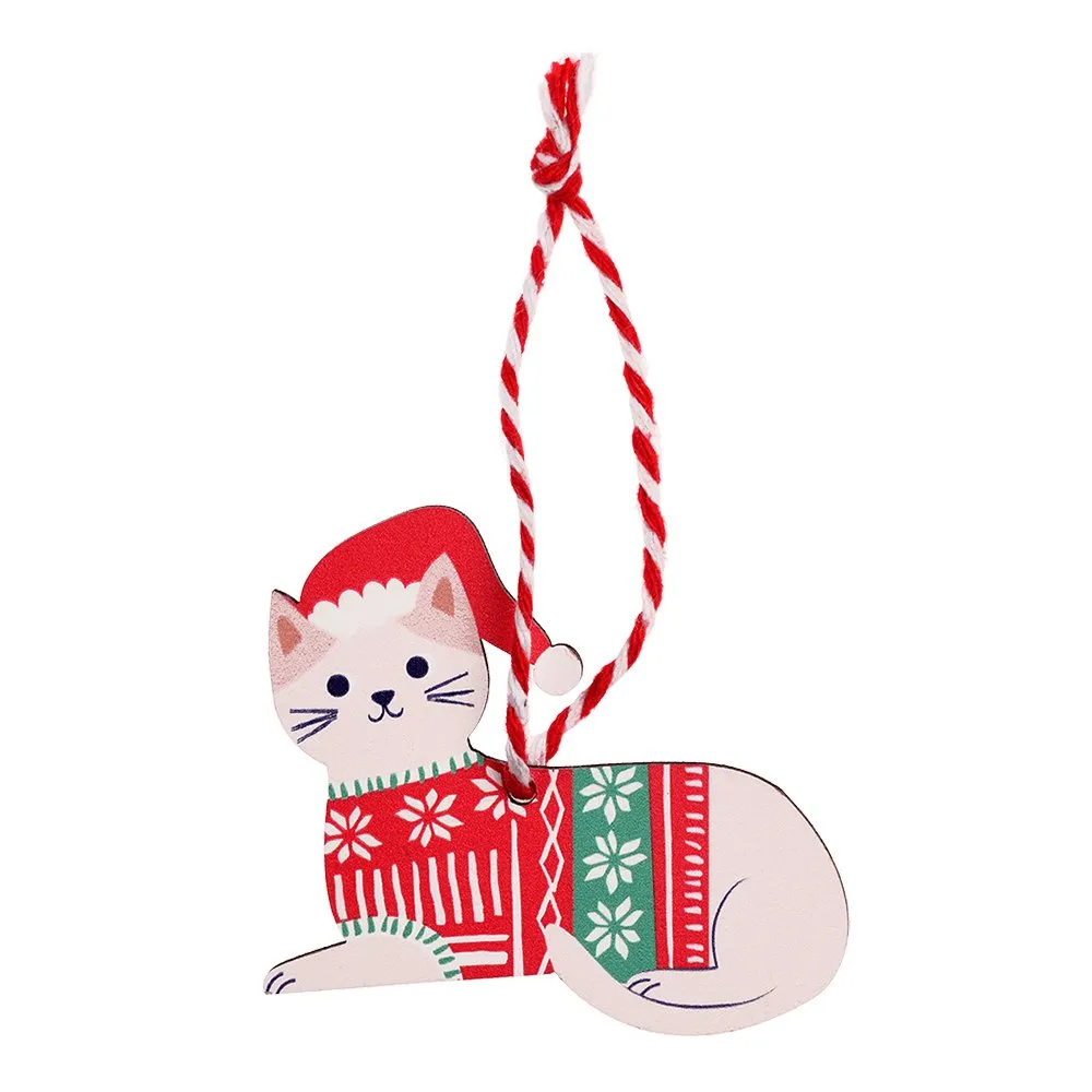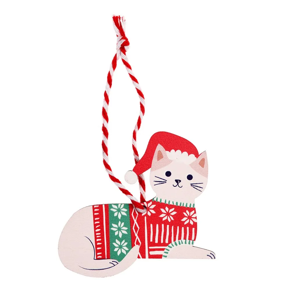 Деревянное украшение для ёлки Кошка белая REX купить в интернет магазине Friend Function
