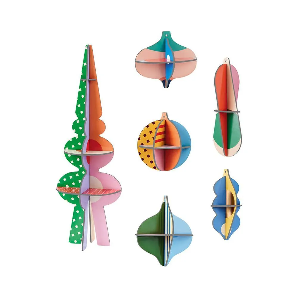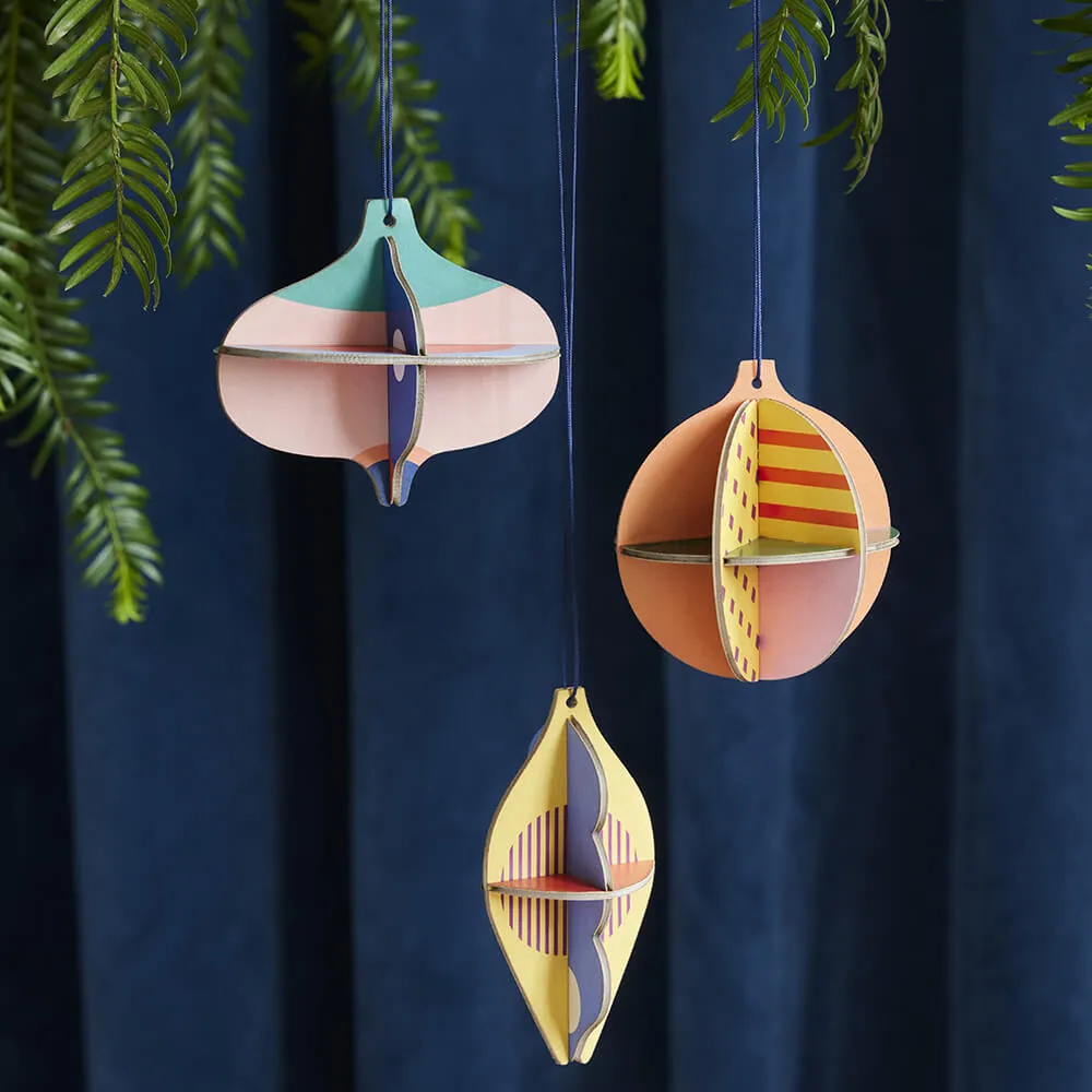 Набор экологичных и очень красочных елочных украшений из бумаги.