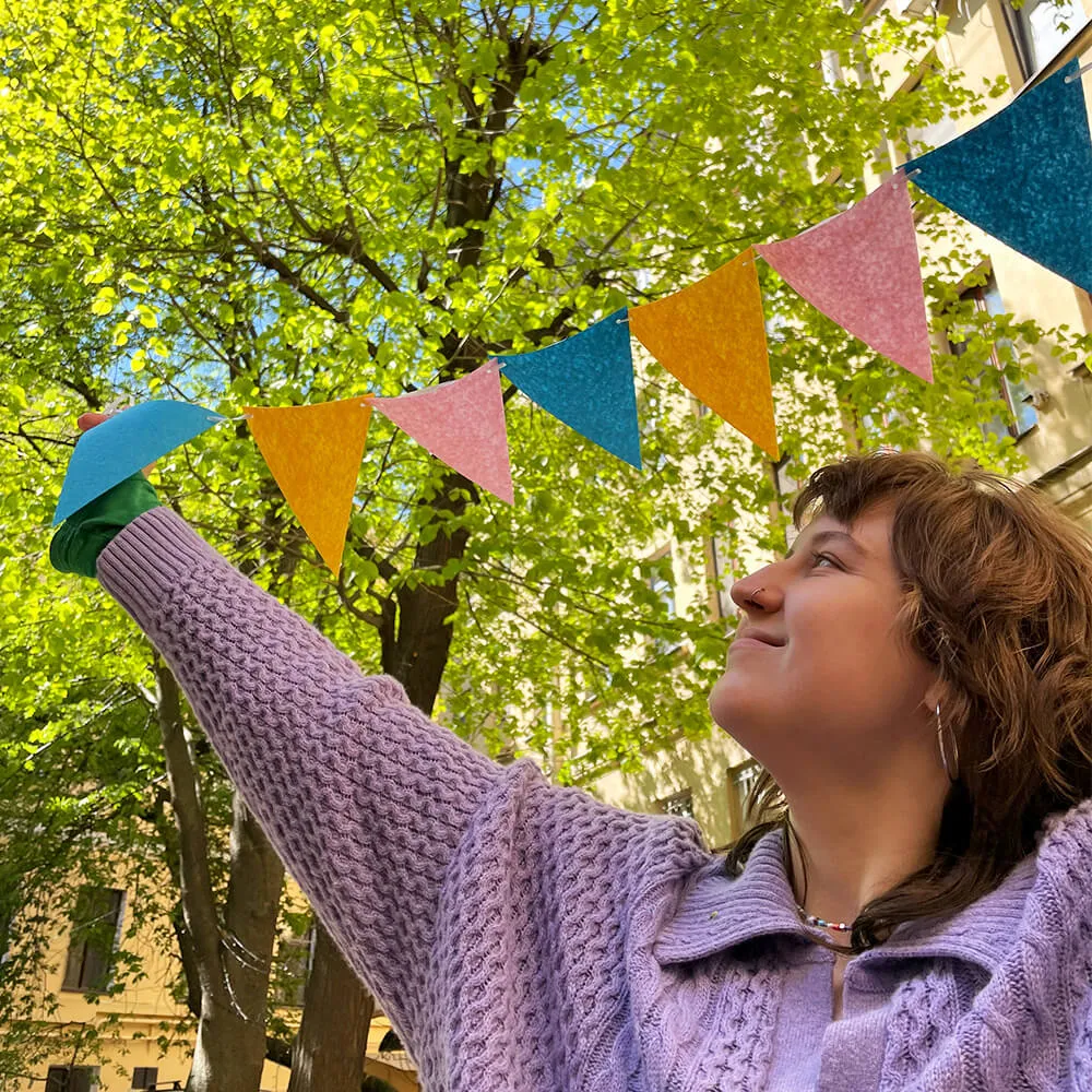 Флажки для вечеринки сине-розово-желтые купить в интернет магазине Friend Function