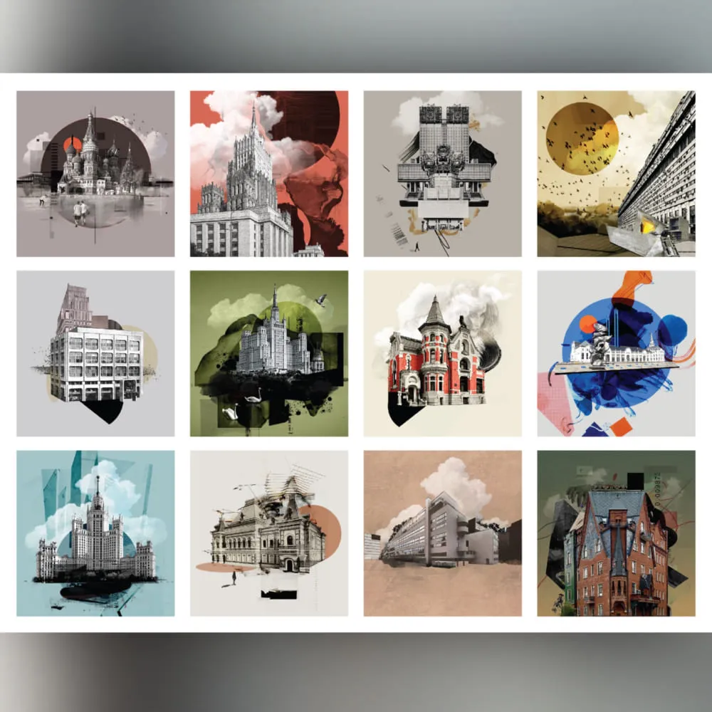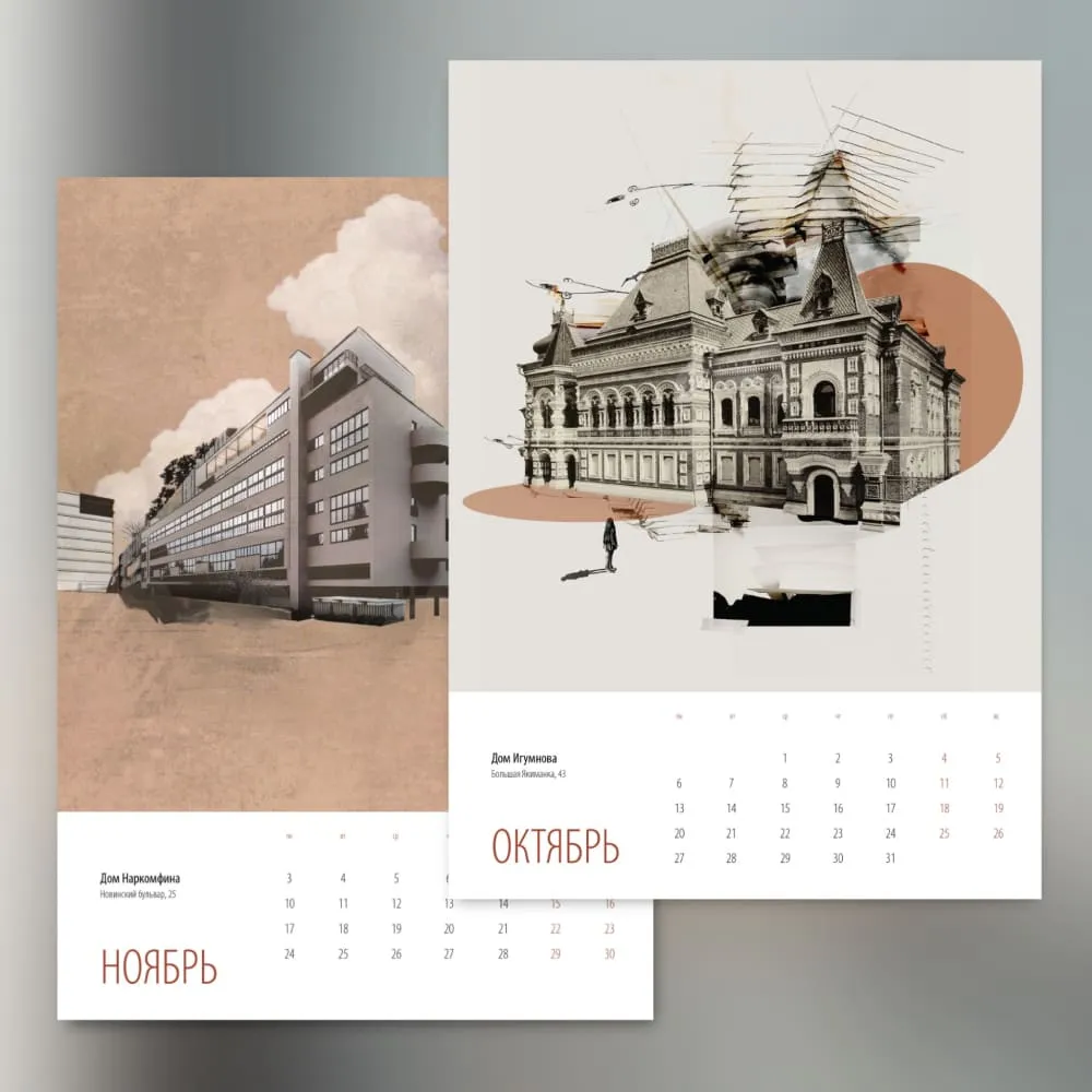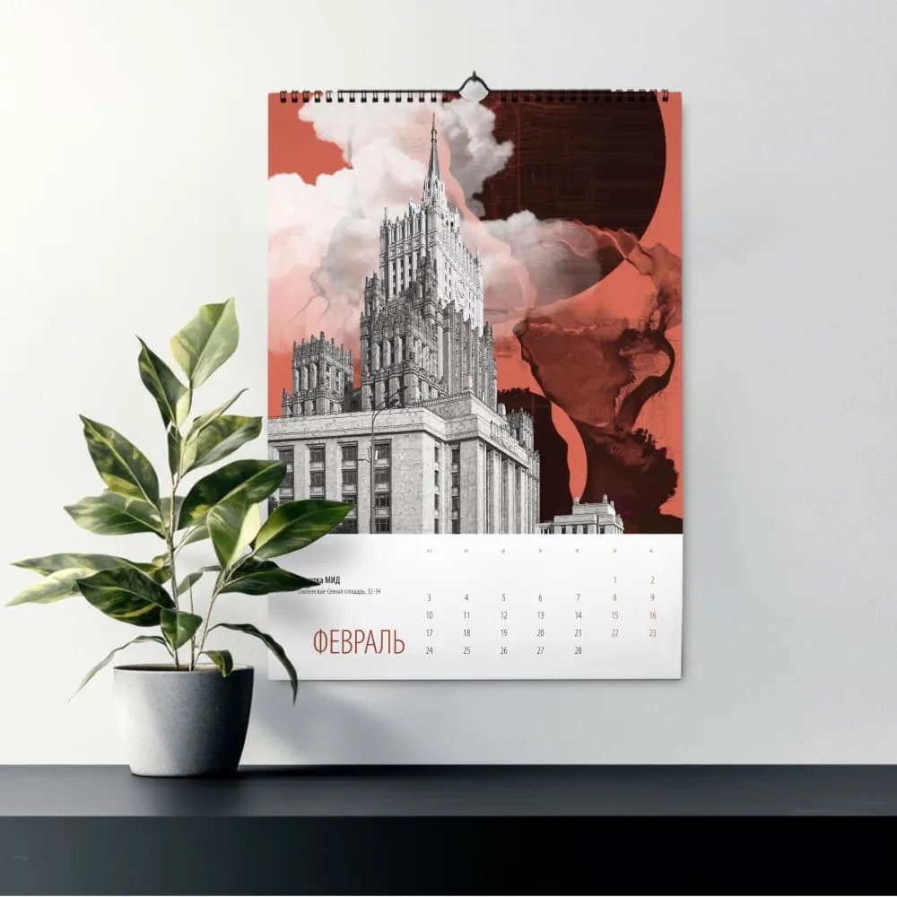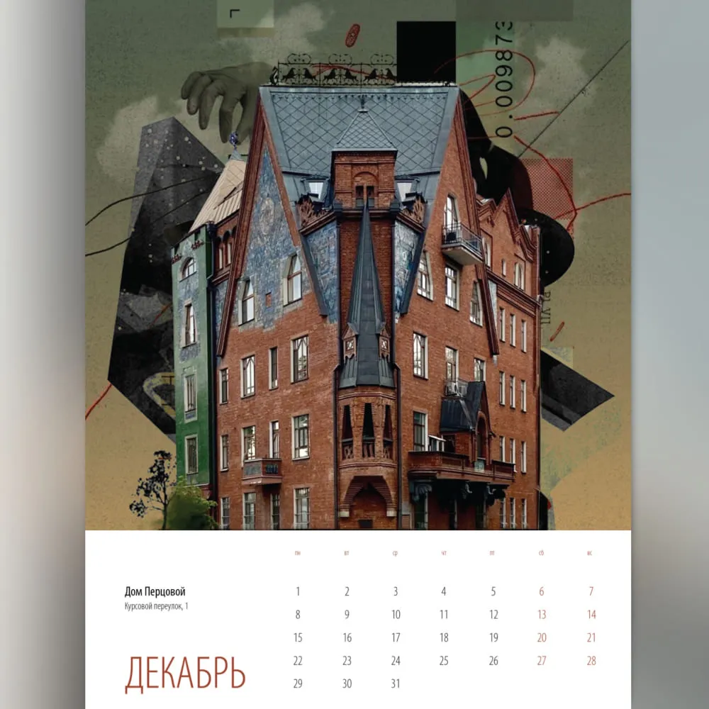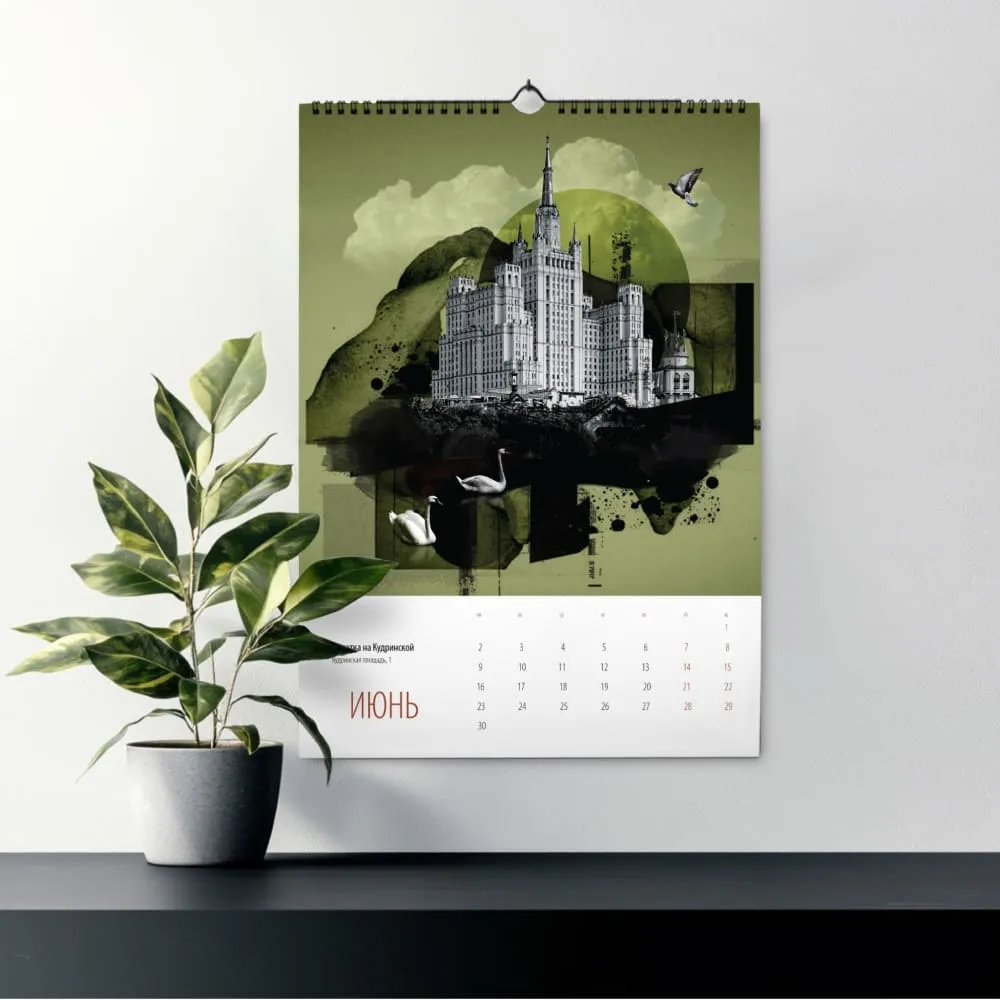 Этот календарь создан в рамках проекта «Сказочная Москва», посвященного архитектуре города. В серии коллажей, выполненных в богатой цветовой палитре, мы смотрим на самые любимые художником здания Москвы через призму художественной интерпретации форм и ассоциаций.