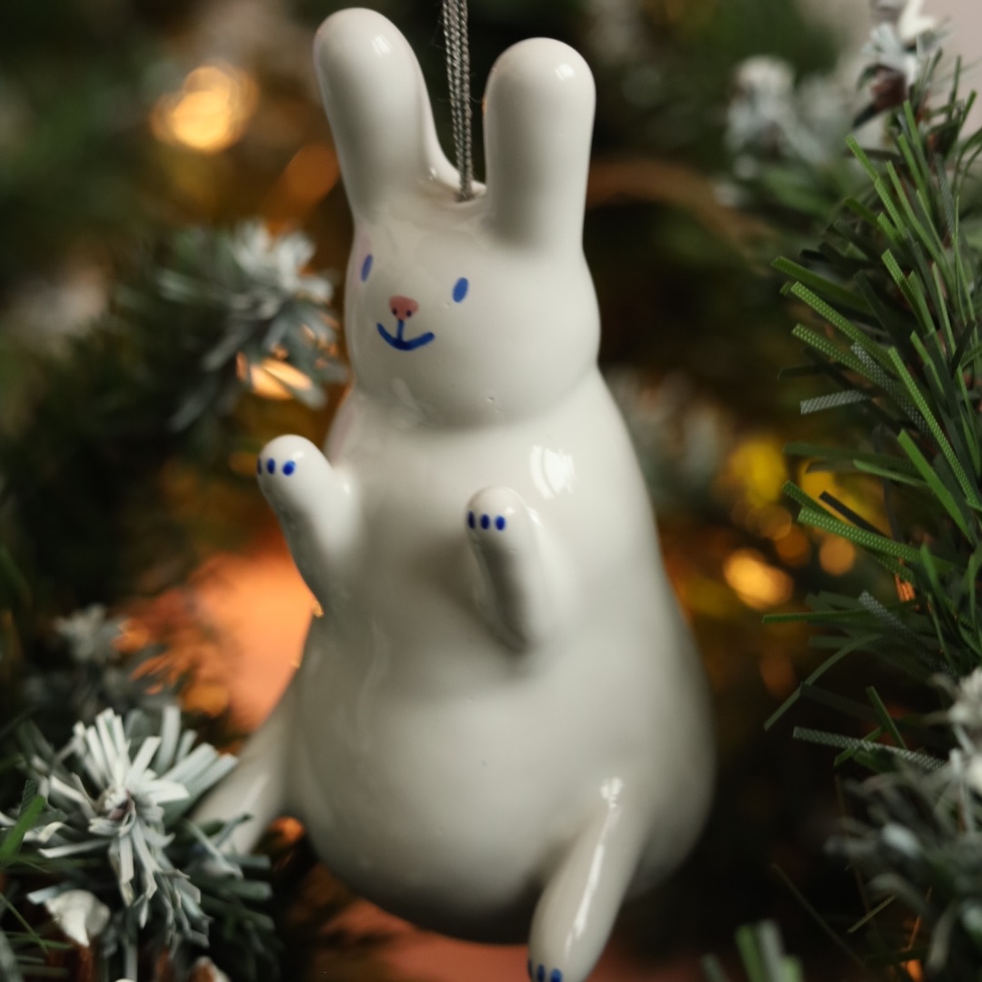 Прекрасный керамический заяц от петербургской мастерицы для вашей елки.