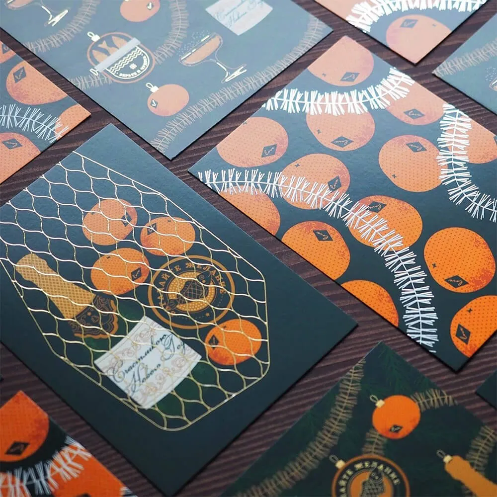 Открытки Inside из мелованного картона с объёмной фольгой.