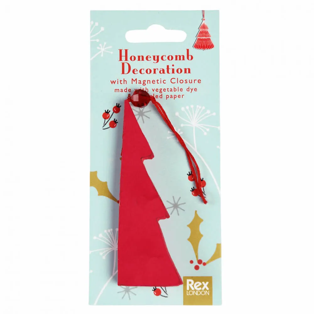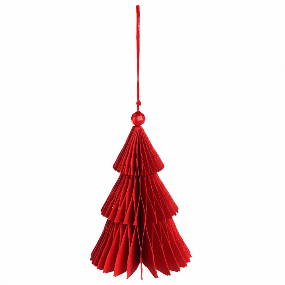 Традиционное новогоднее украшение для ёлки из красной бумаги в форме ёлки.