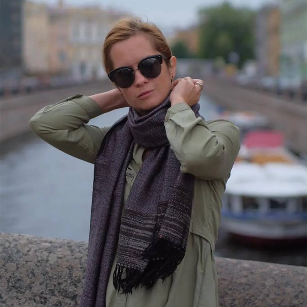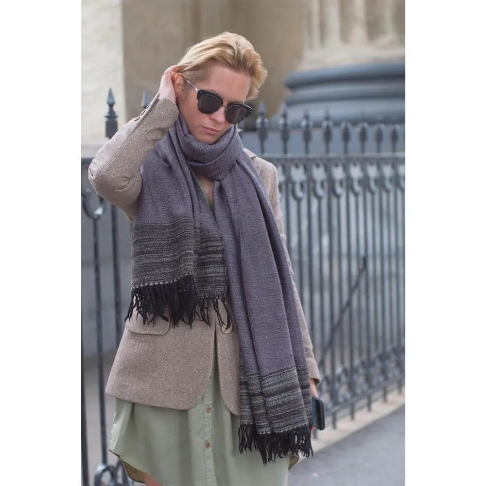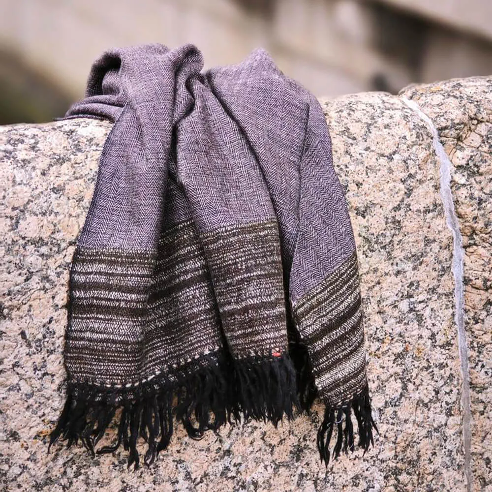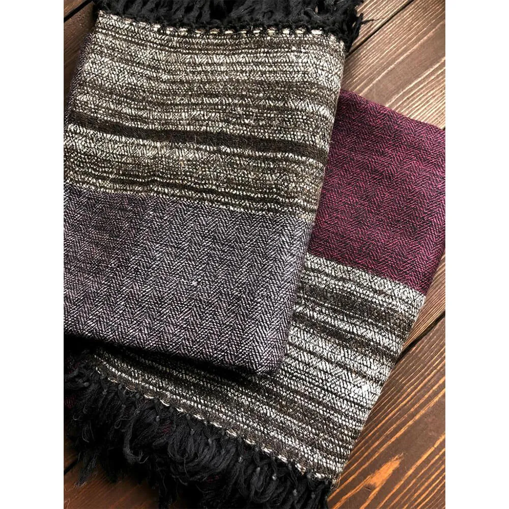Тёплый и красивый шарф сотканный в классическую елочку пыльно-лилового цвета с меланжевой полосой для сохранения тепла в душе и теле.