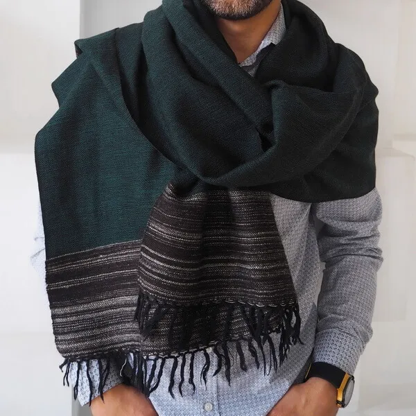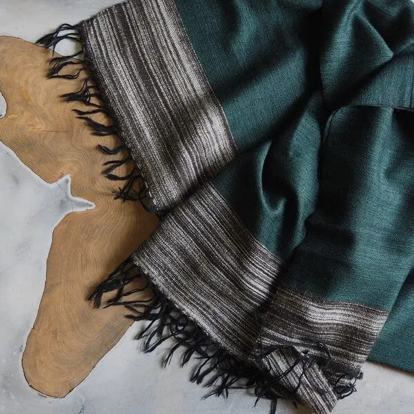 Тёплый и красивый изумрудный шарф с меланжевой полосой для сохранения тепла в душе и теле.