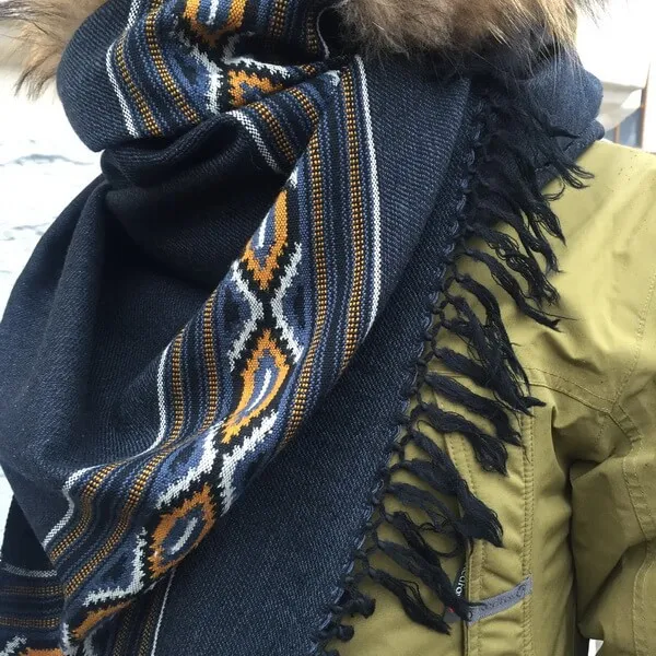Тёплый и красивый синий шарф с традиционным гималайским орнаментом для сохранения тепла в душе и теле.