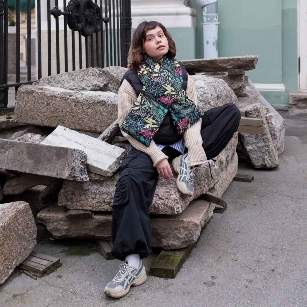 Дутый шарф нашего производства для городских дел и лесных прогулок.