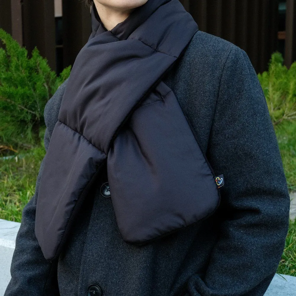 Дутый шарф нашего производства для городских дел и лесных прогулок.