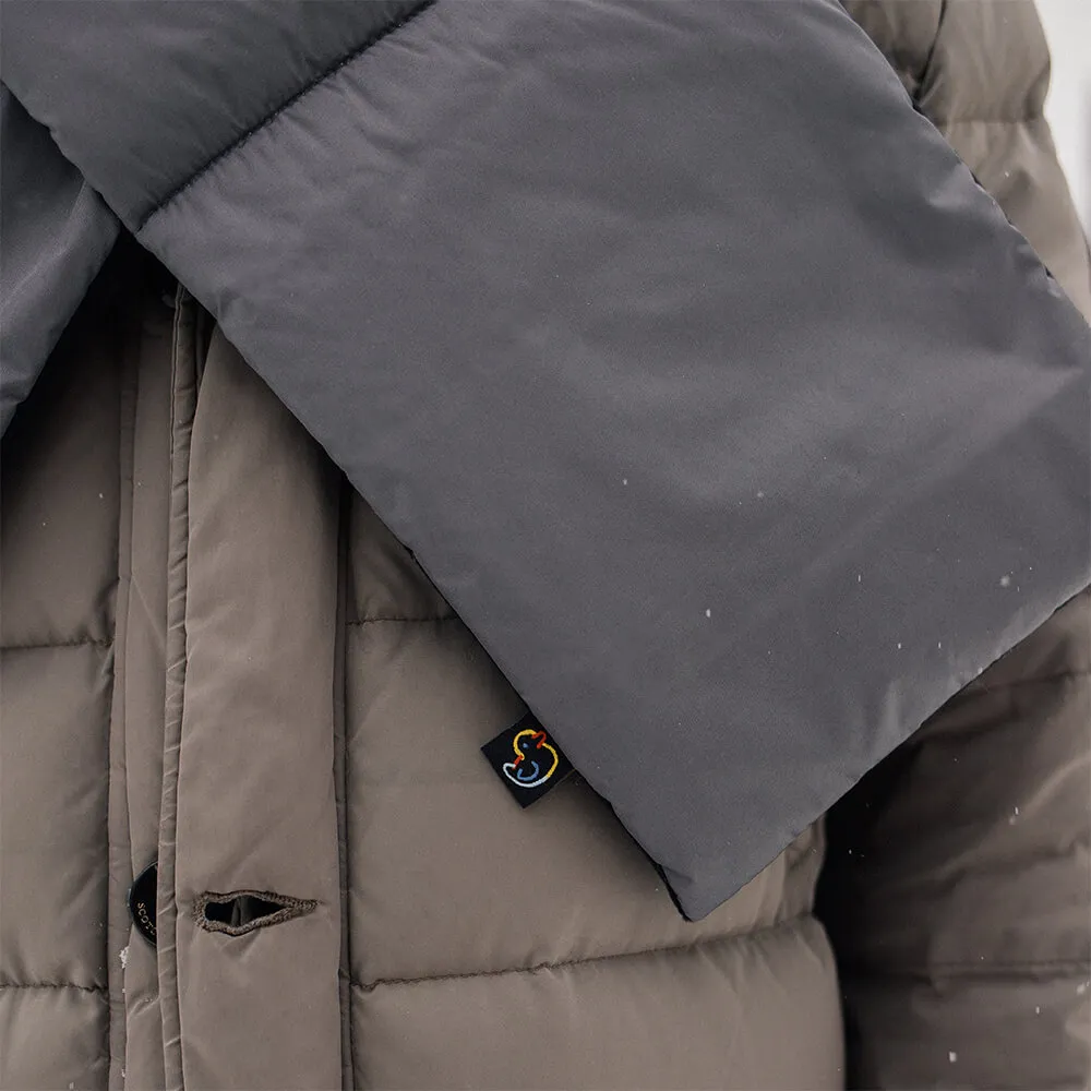 Дутый шарф нашего производства для городских дел и лесных прогулок.