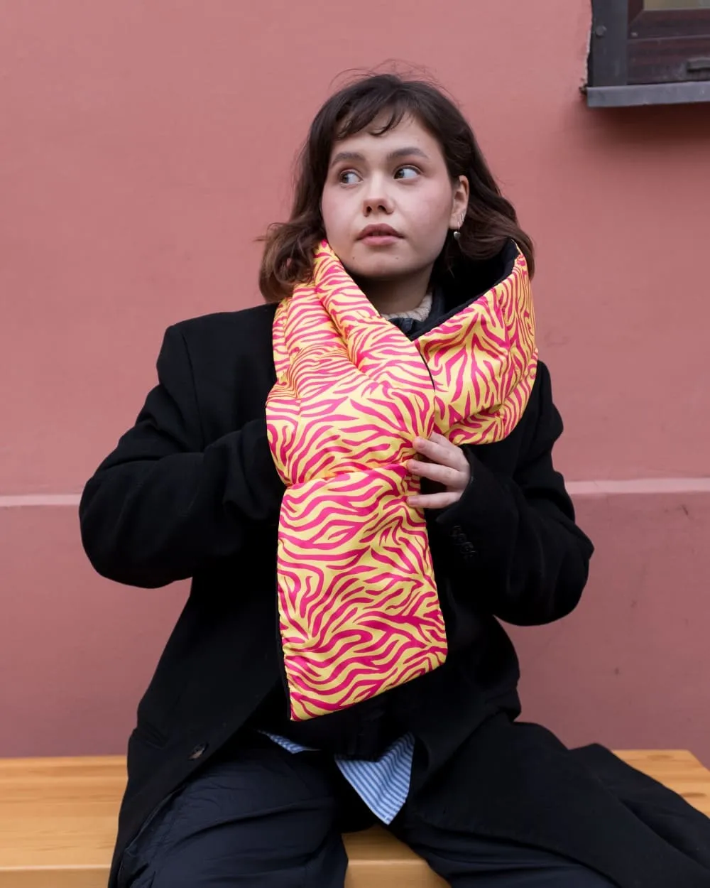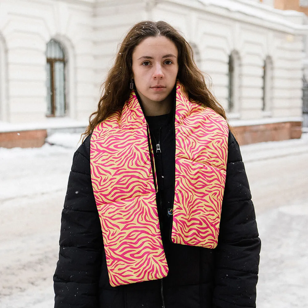 Дутый шарф Friend Function зебровый розовый цвет Желтый