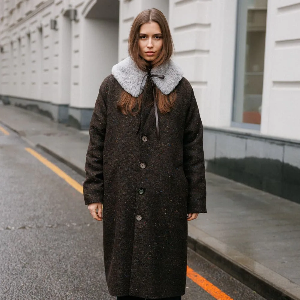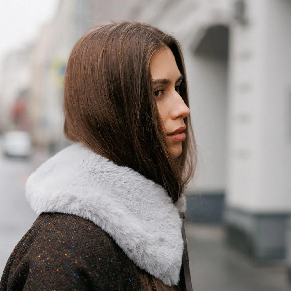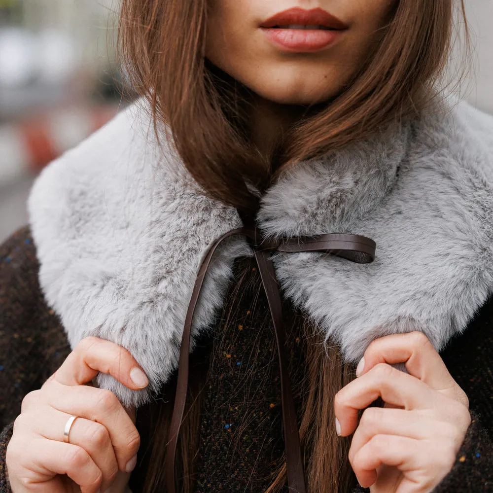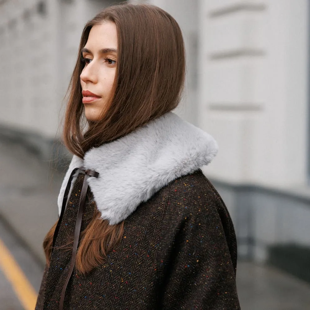 Пушистый воротничок из искусственного кролика на завязках. Будет греть в холода и подружится с любым пальто, особенно с нашим!