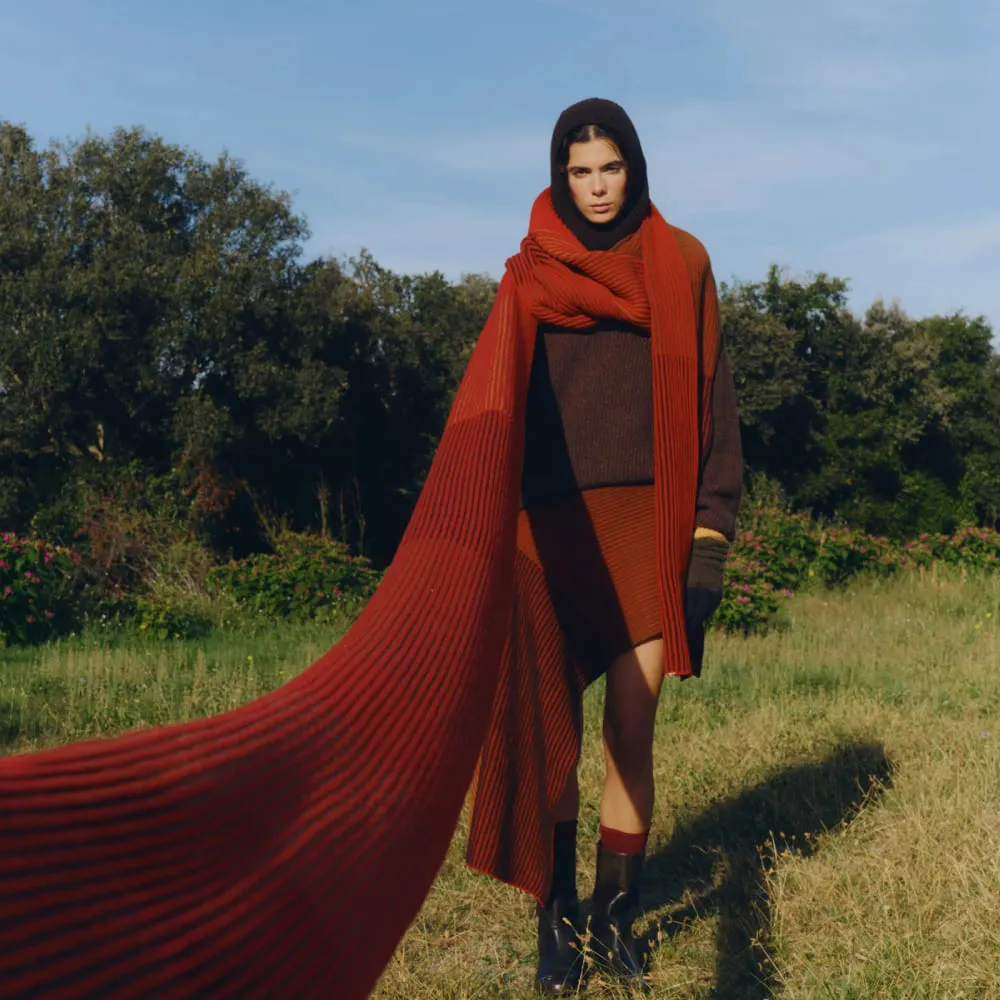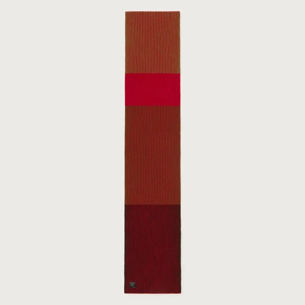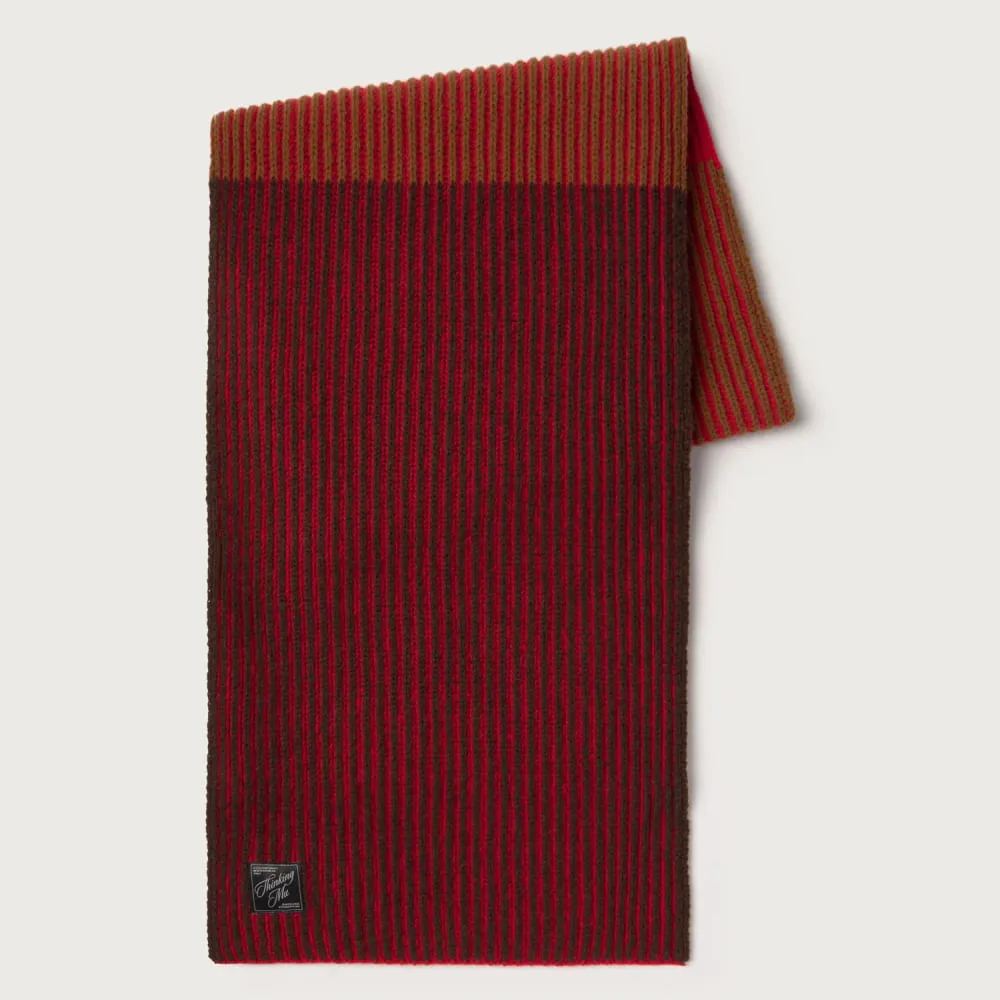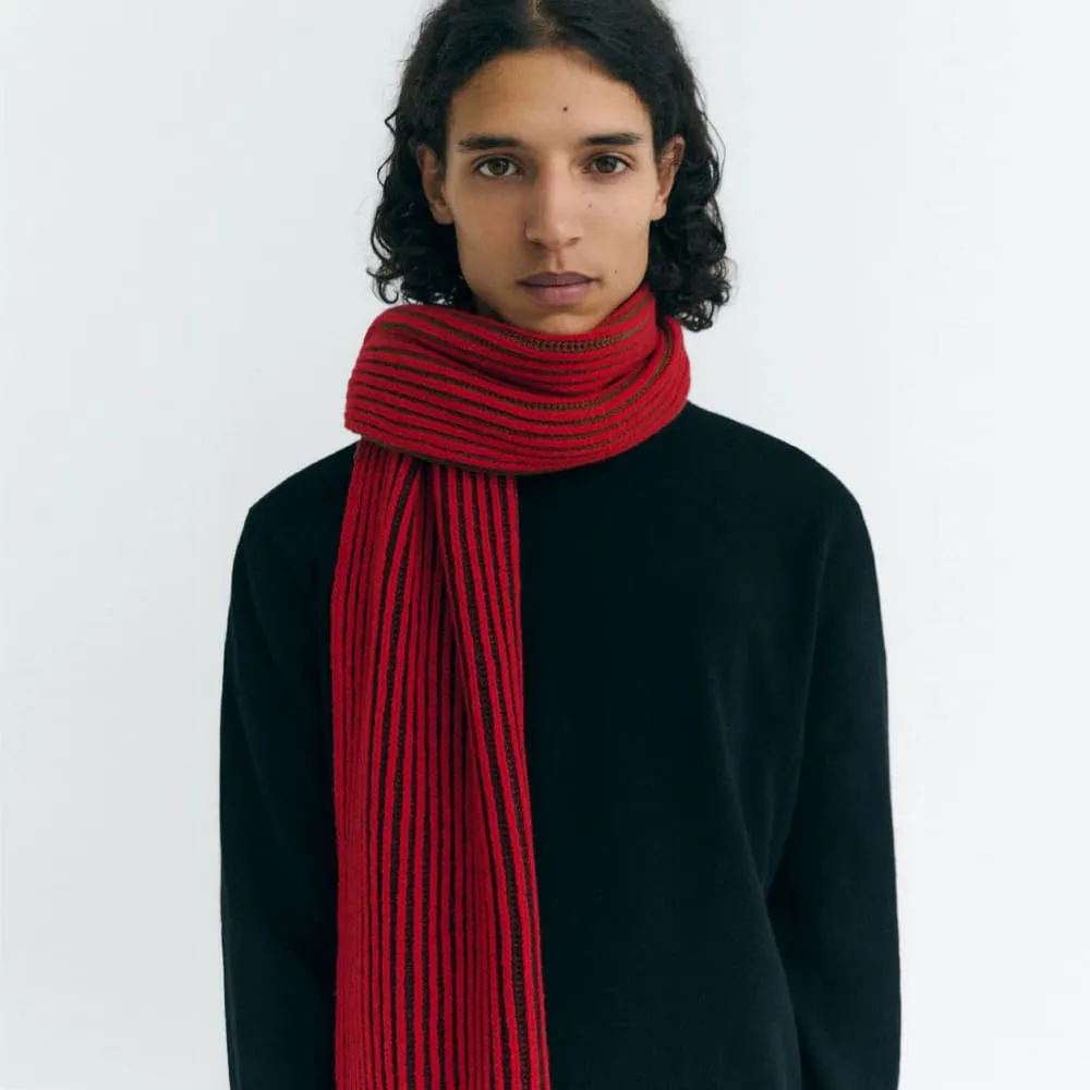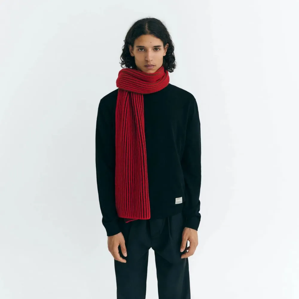 Шерстяной ребристый шарф красного цвета от испанского бренда Thinking Mu.