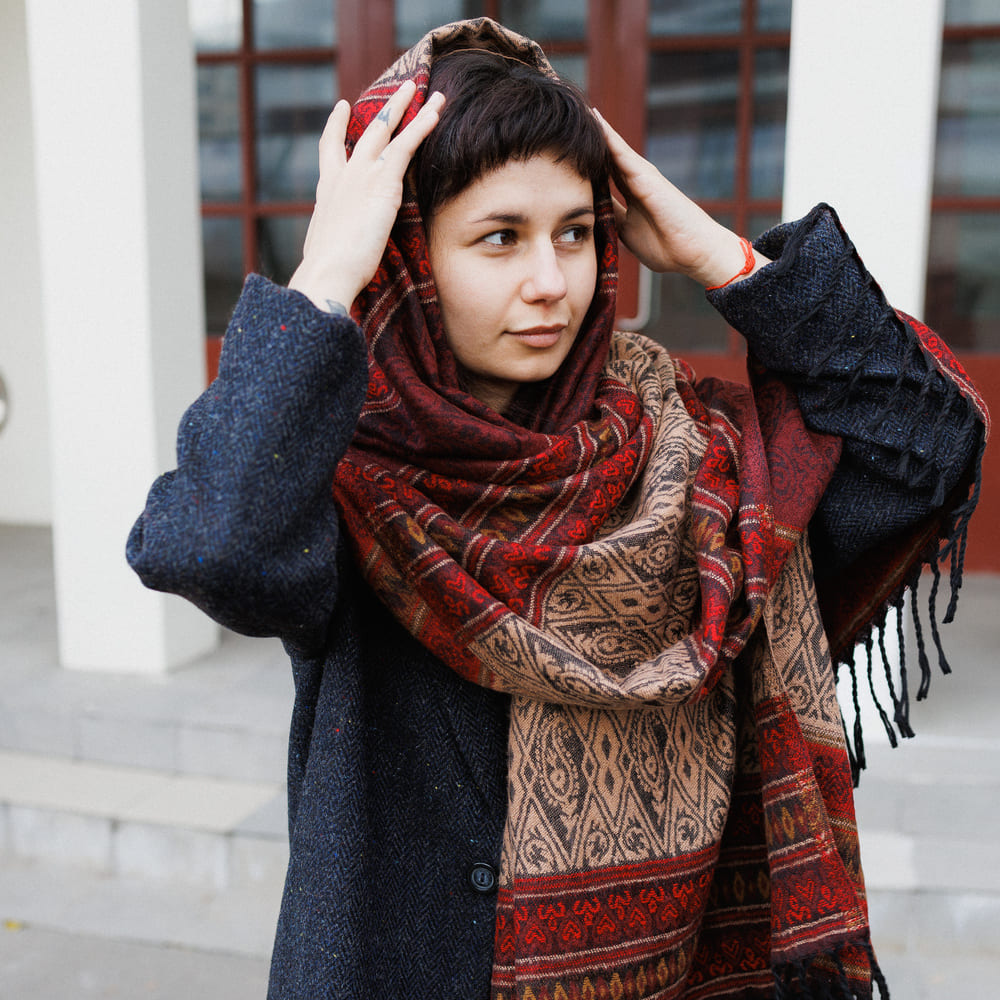 Огромный теплый мягкий шарф Бхайрава родом из Непала.