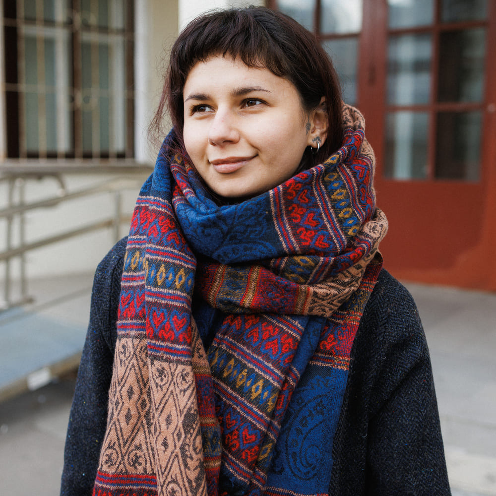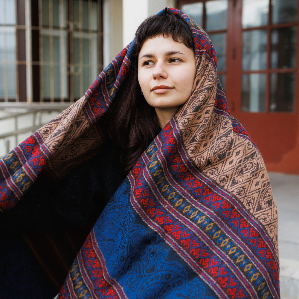Огромный теплый мягкий шарф Сундари родом из Непала.