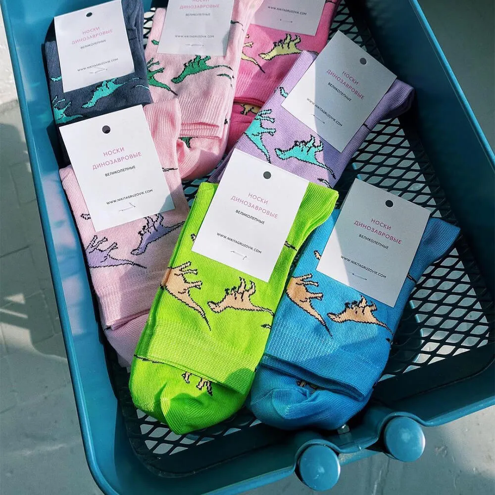 Носки от мастера сумок на пояс Никиты Грузовика. Крутой цвет, крутые динозавры.