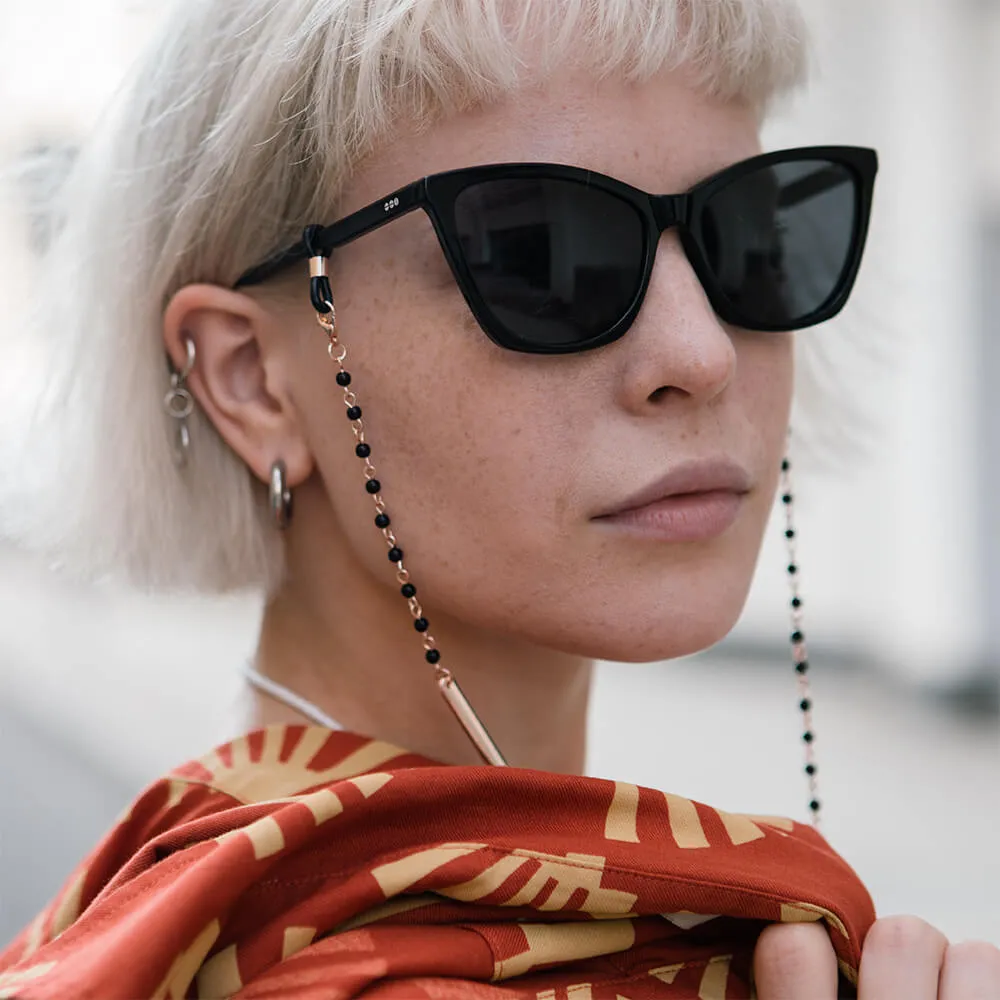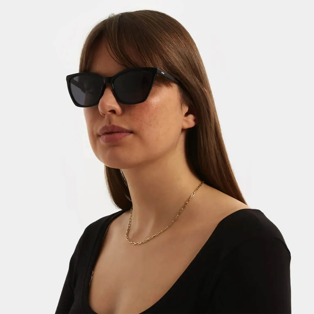 Черные бельгийские солнцезащитные очки Alexa с тонкой оправой в винтажном стиле.