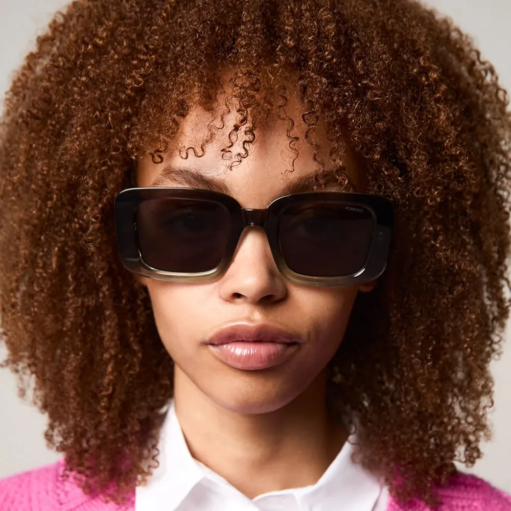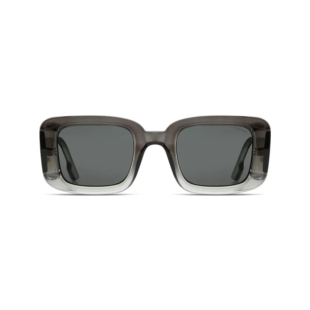 Прямоугольная форма и серые линзы придают этой модели строгий, при этом элегантный вид, который можно сравнить с очками в стиле 80-х.