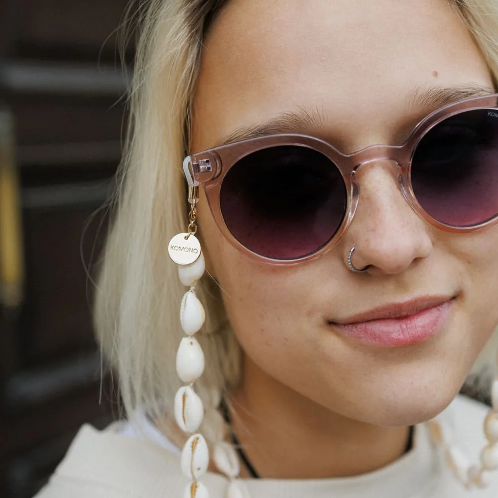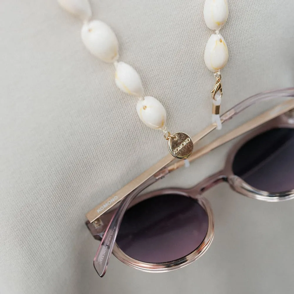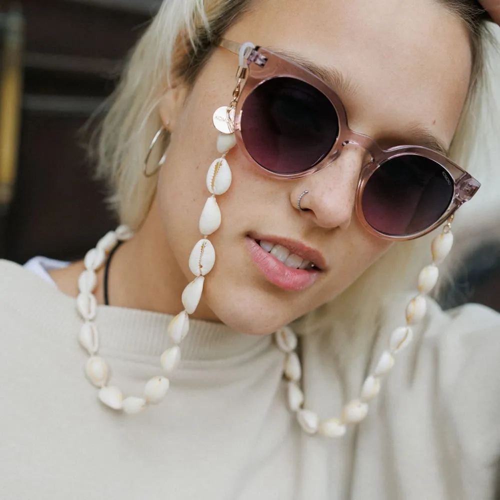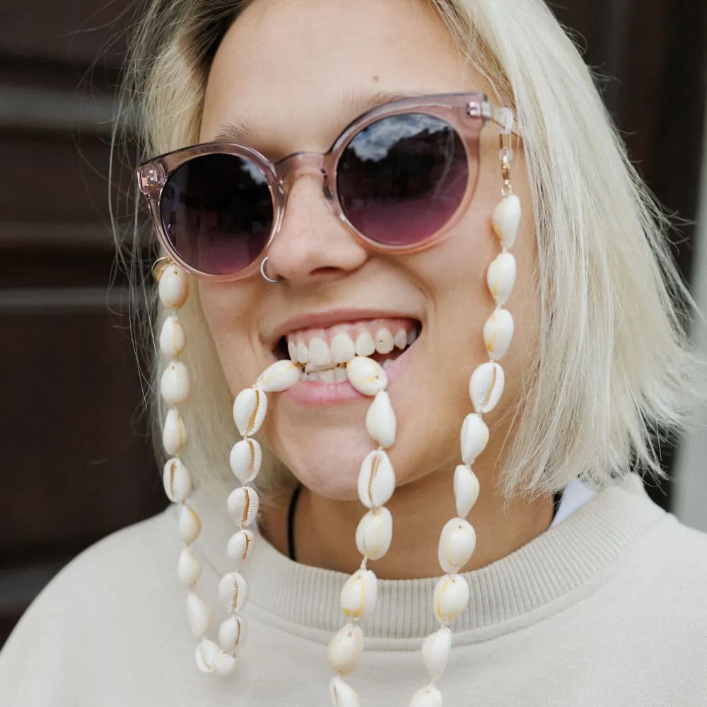 Цепочка из настоящих ракушек — как маленький морской сувенир, который всегда с тобой. Напоминает о лете, пляже и держит очки на месте.