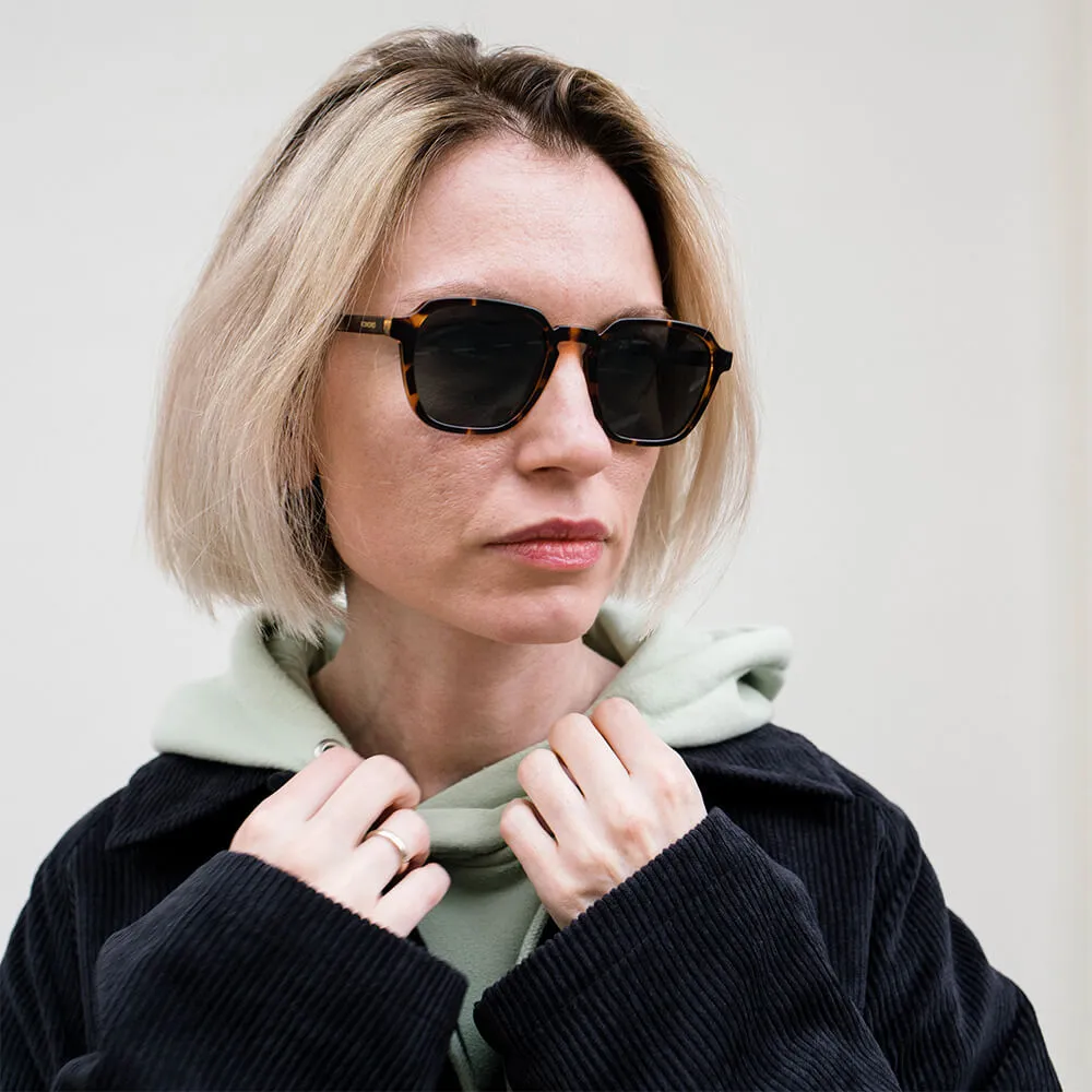 Солнечные очки Matty в цвете Havana - это элегантная оправа с прямоугольными линзами, которая подходит для многих форм лица.