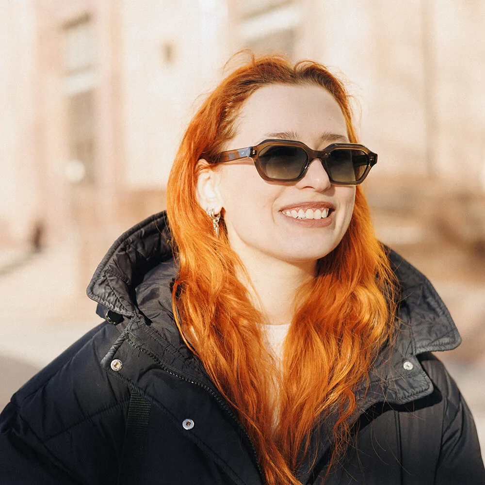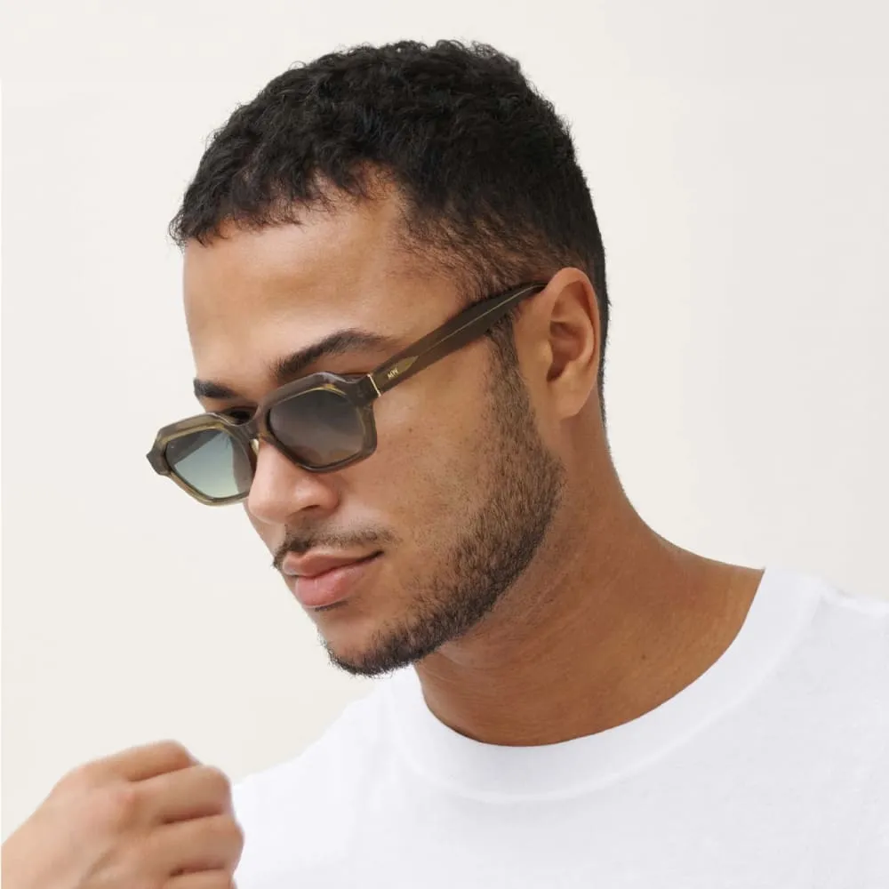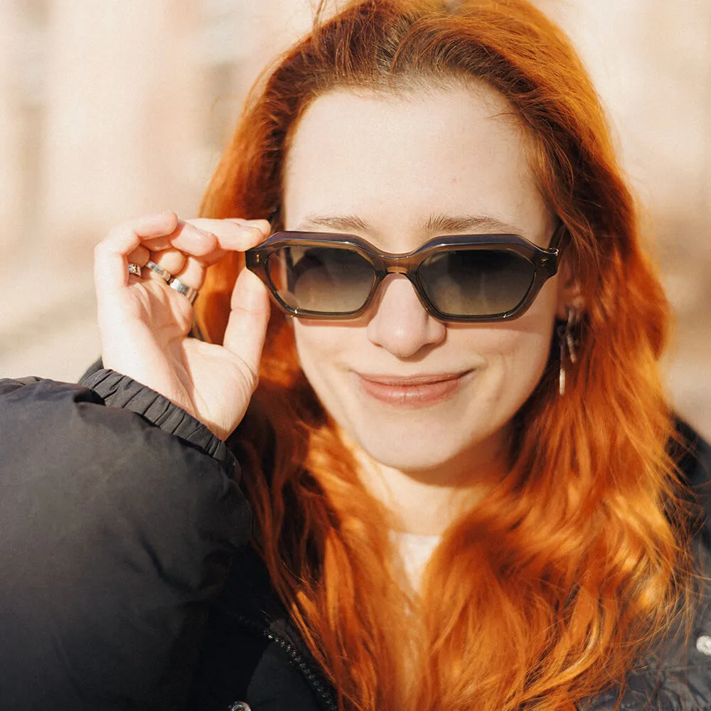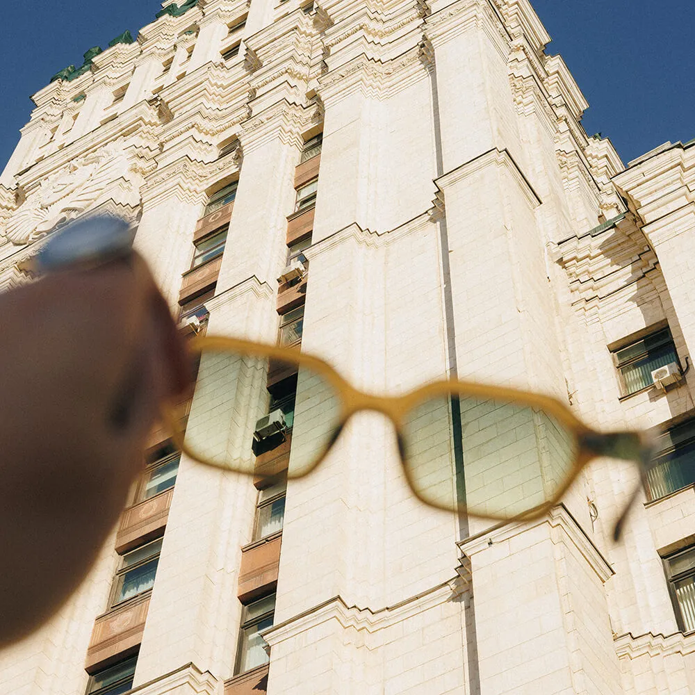 Оправа ANTHONY уникальной шестиугольной формы с заостренными краями - главный солнечный тренд года. Оправа из ацетата ручной работы с 5-ствольными золотыми петлями и золотой окантовкой на дужках. Как всегда, 100% защита от ультрафиолета