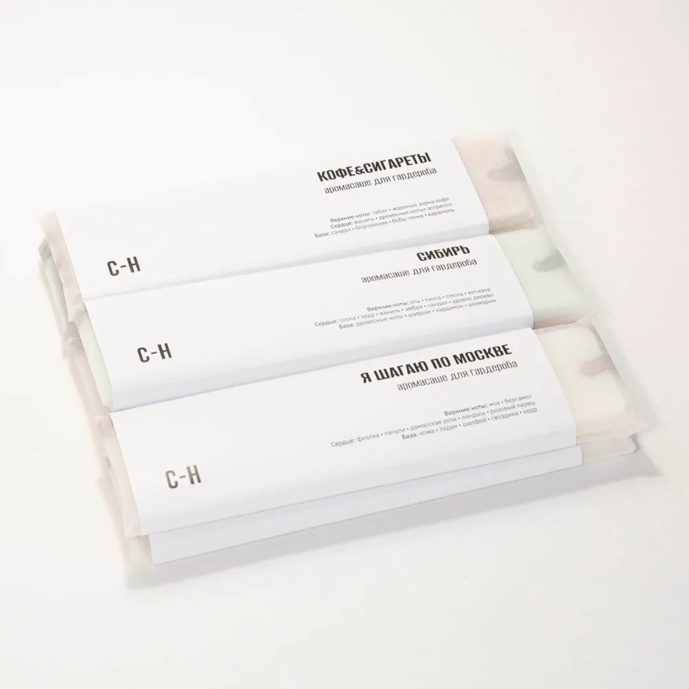 С-Н [це-аш] воссоздали флорентийские саше, впервые придуманные в 17 веке в старинной аптеке во Флоренции, которая работает до сих пор, но соединили старую традицию с современным миром и посвятили ароматы любимым фильмам и книгам. Так появились 7 ароматических саше со смыслом.