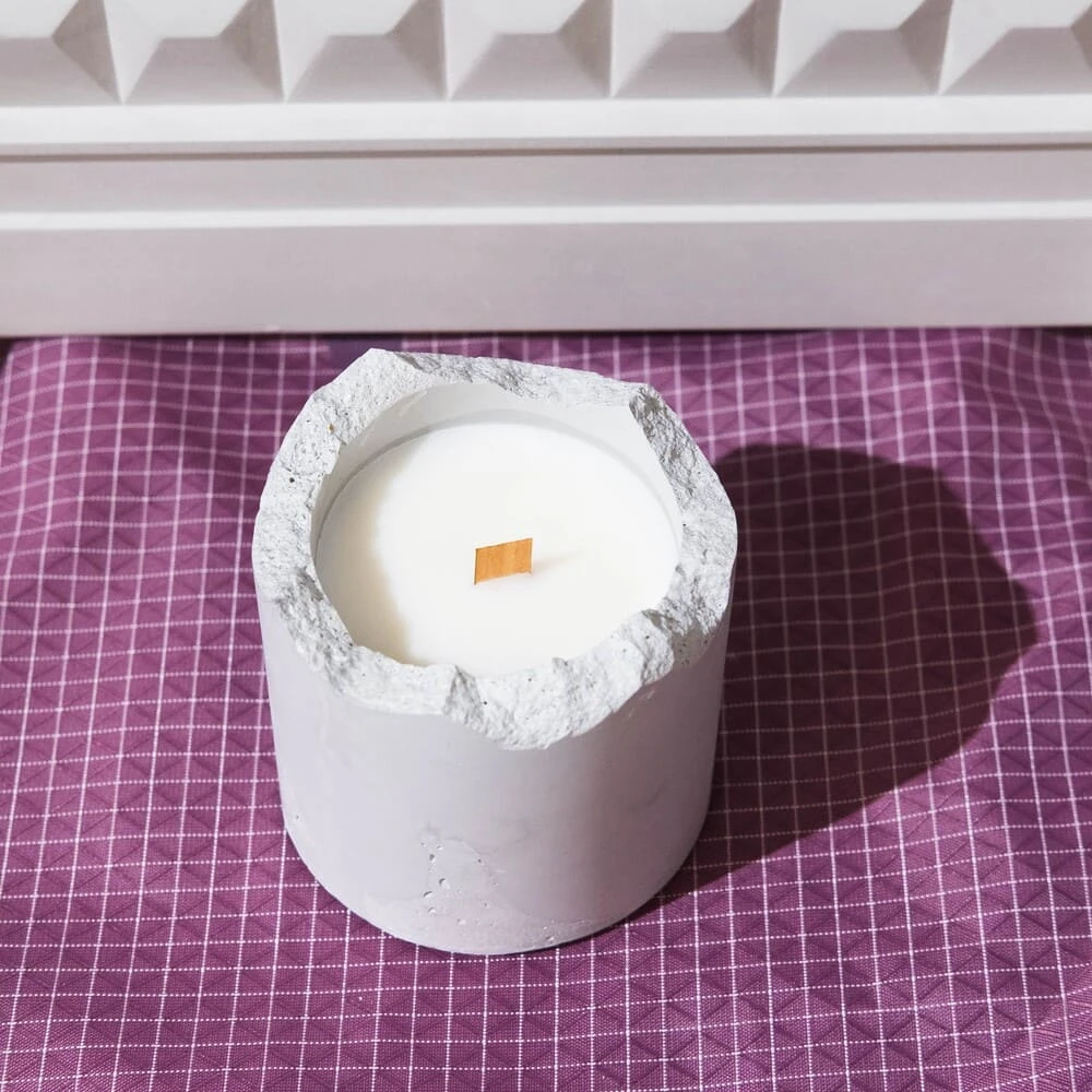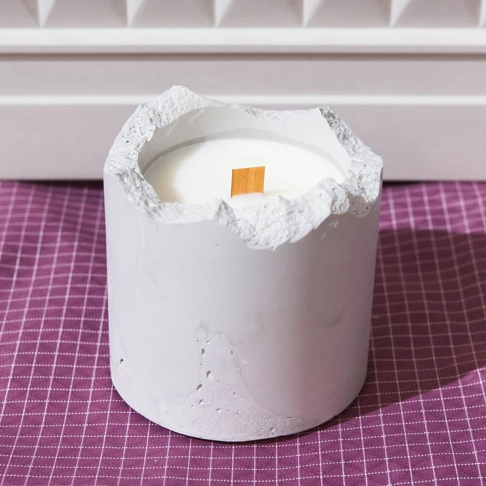 - Подсвечник выполнен из бетона классического цвета.