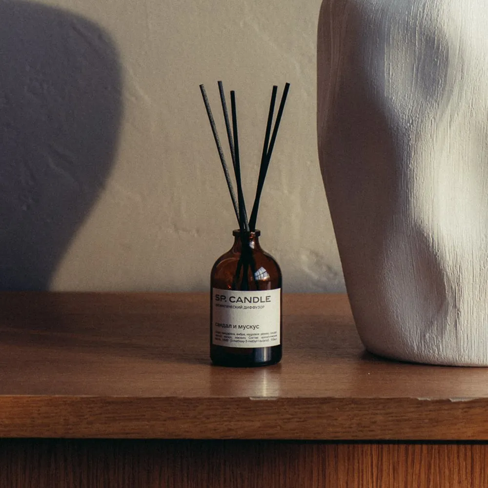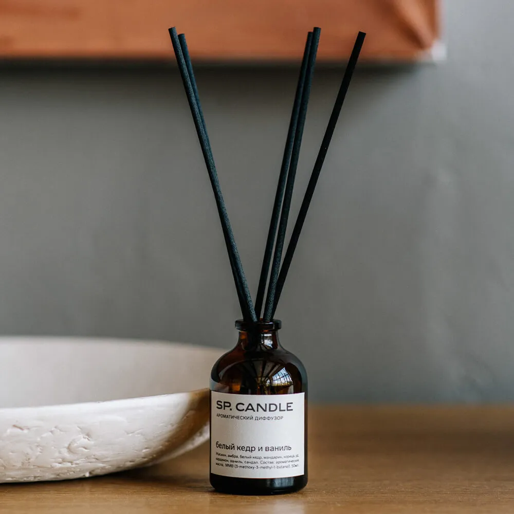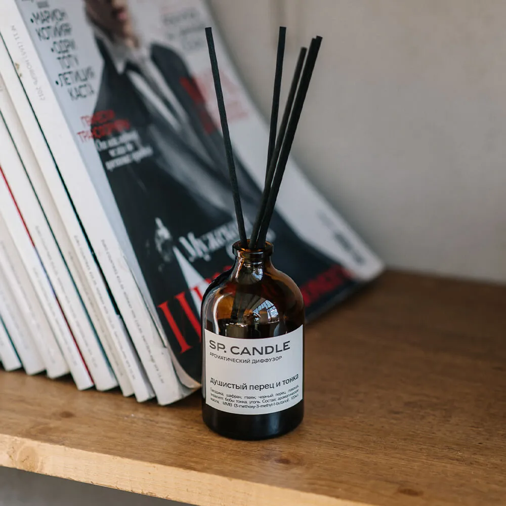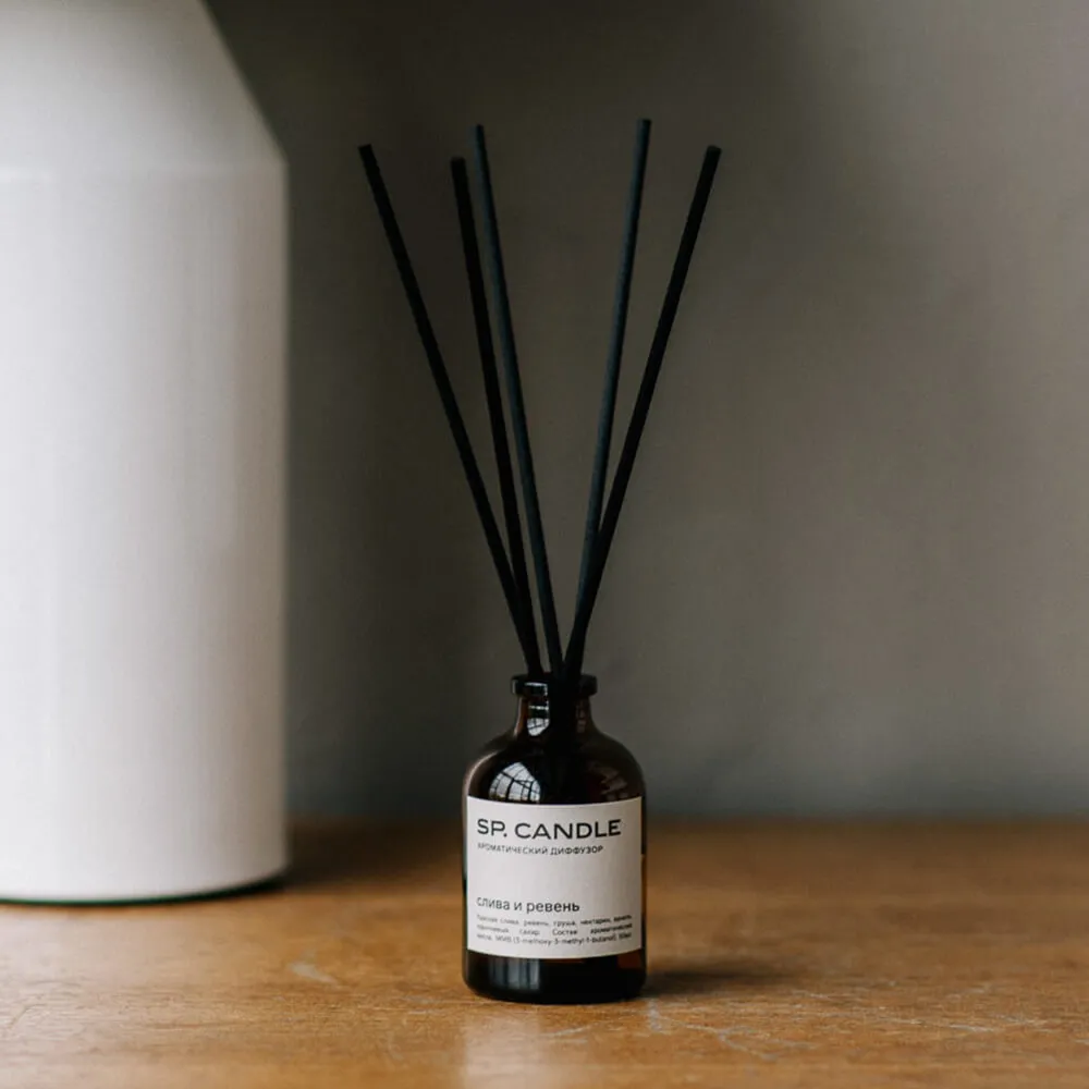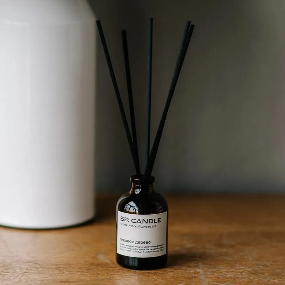 Диффузор для дома SP Candle с крутыми ароматами и ротанговыми палочками в комплекте.