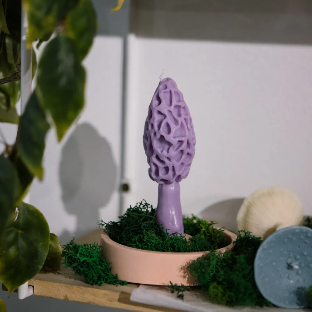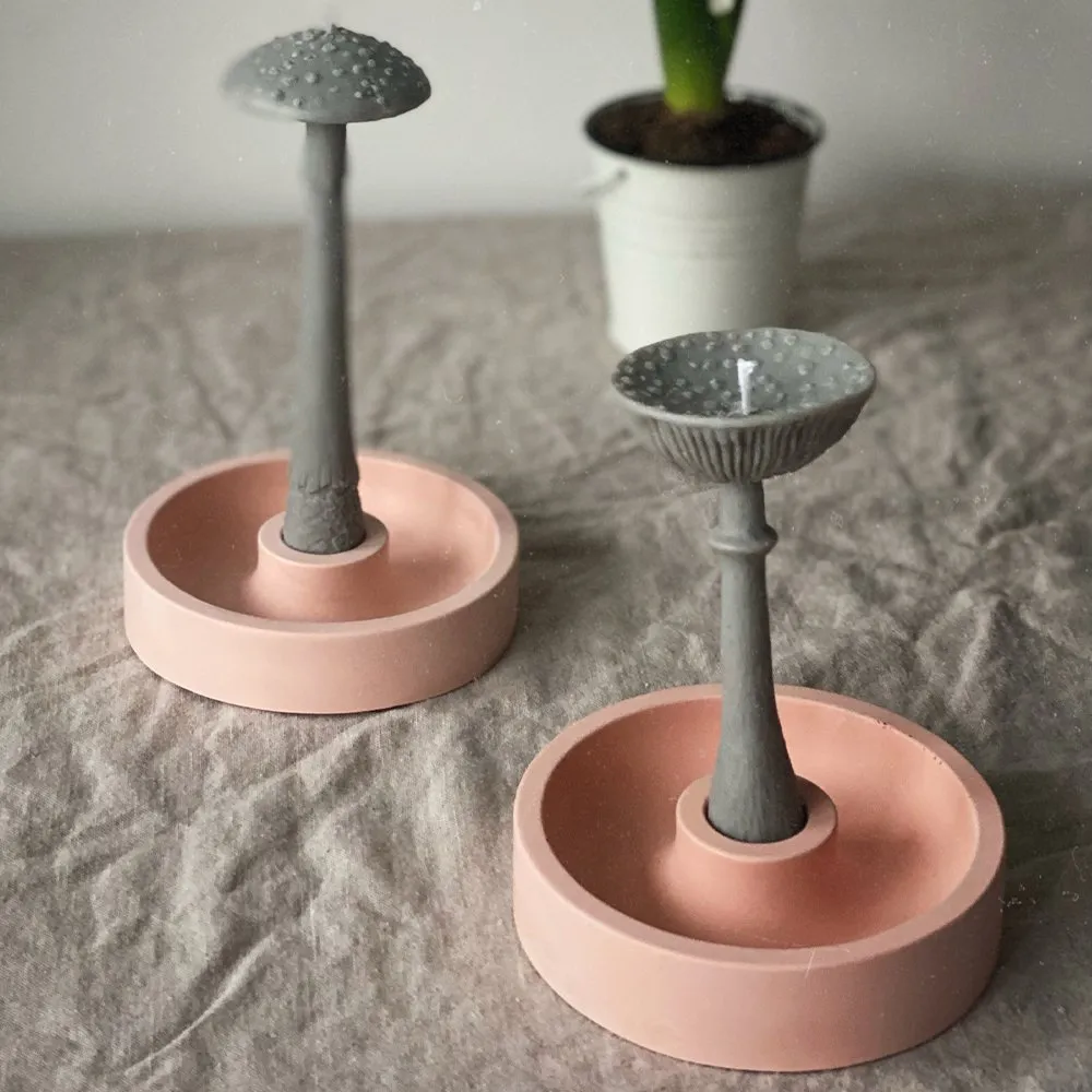 Персиковая подставка идеально подходит для столовых свечей и к свечам-мухоморам. Она удерживает свечи четко вертикально и не даст испачкать горячему воску ваш стол.