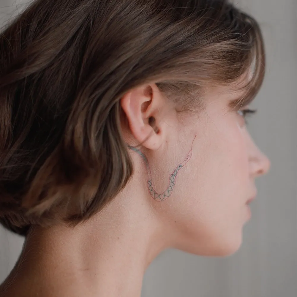 - Эскиз каждой татуировки рисуется акварелью, после чего по уникальной технологии переносится на специальную основу.